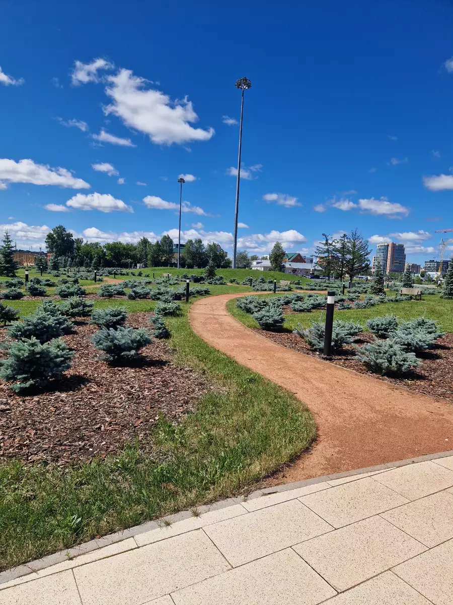 Прогуливаясь дальше, мы прошли мимо местного стадиона и увидели, как рядом активно возводится новая Ледовая арена — ещё один шаг в развитие спортивной инфраструктуры города.