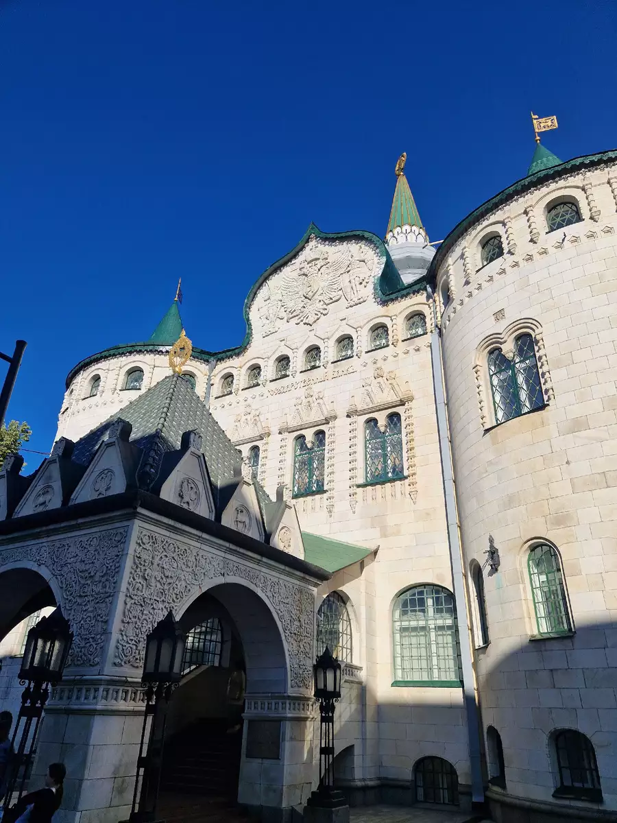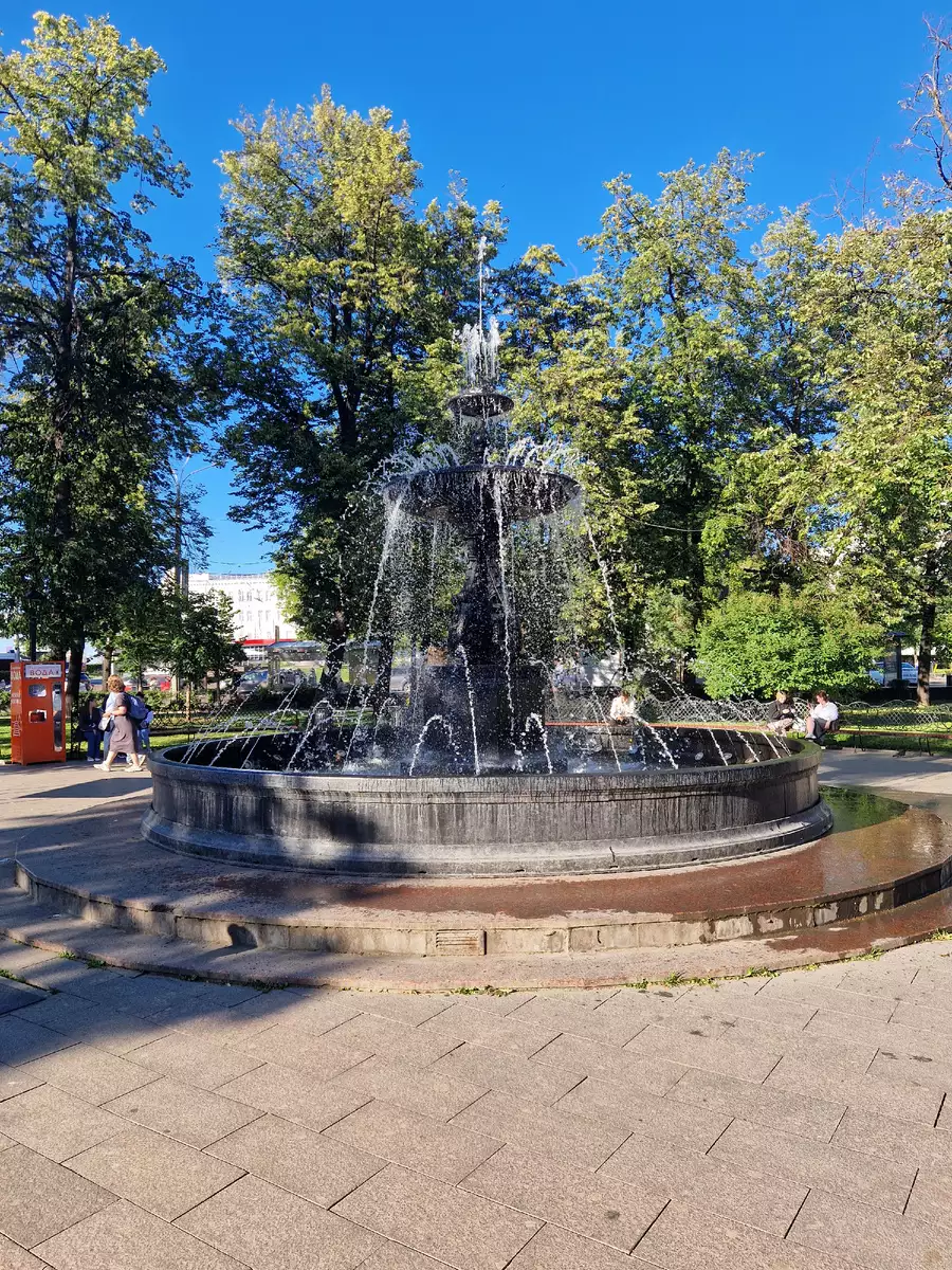 Пройдя чуть дальше, мы оказались перед величественным зданием Нижегородской ярмарки — одного из символов торговой славы города. Площадь перед ней оформлена с любовью: фонтан, аккуратные клумбы, удобные скамейки. Здесь можно просто посидеть, сделать пару фото или просто почувствовать атмосферу старого, но живого города.