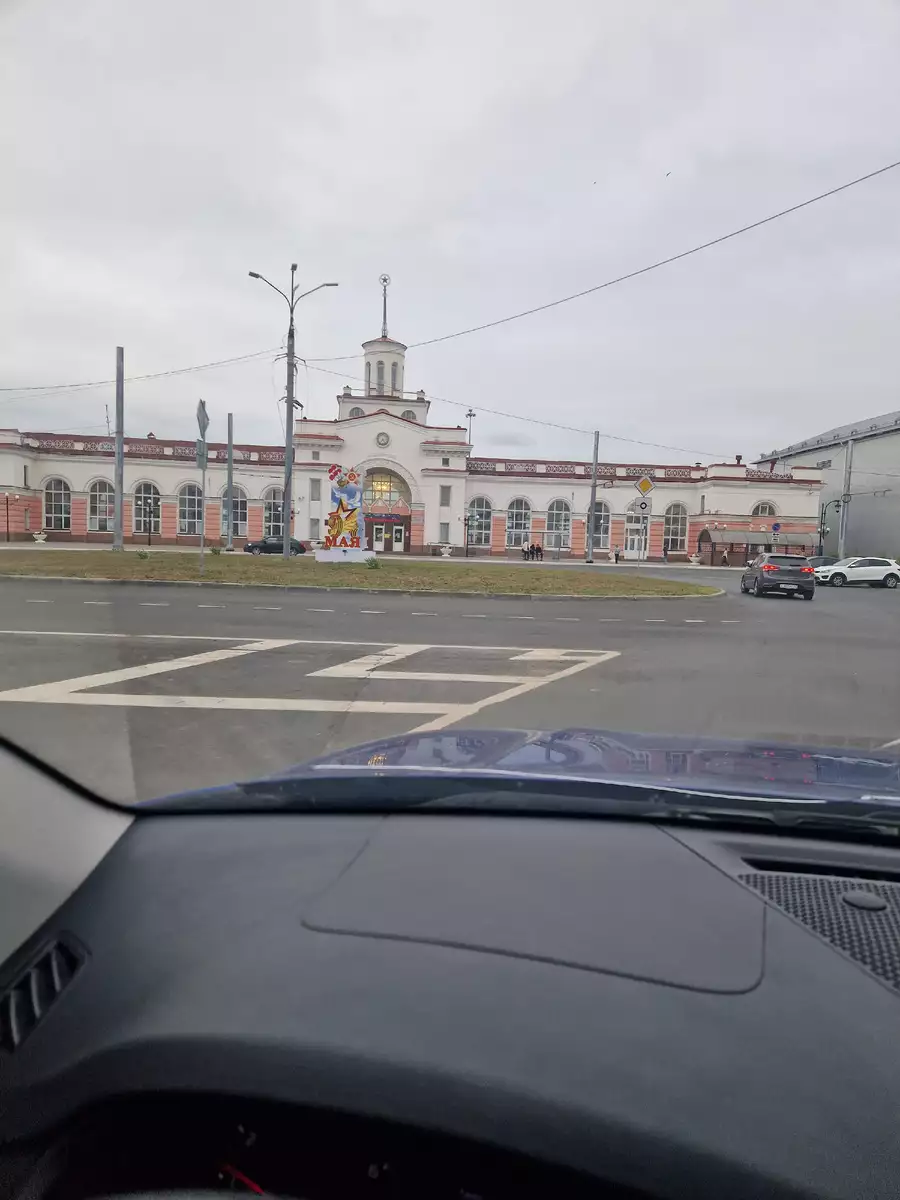 Перед отъездом сделали небольшой фото-стоп у железнодорожного вокзала — тоже интересный архитектурный объект. Это здание было построено в 1960-х годах, и сохранило определённый шарм советской эпохи.