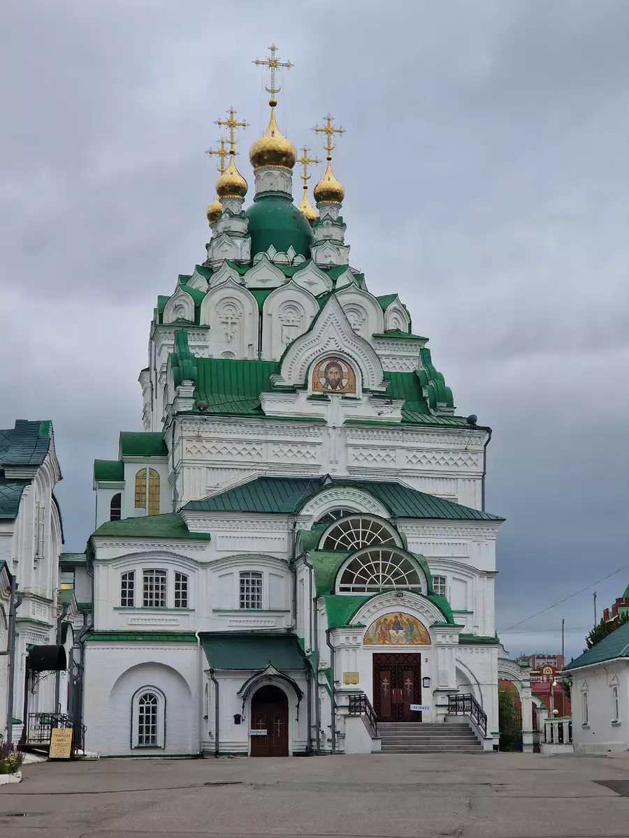 Пройдя через Театральный мост, мы оказались рядом с Благовещенским собором — еще одной жемчужиной архитектуры Йошкар-Олы.