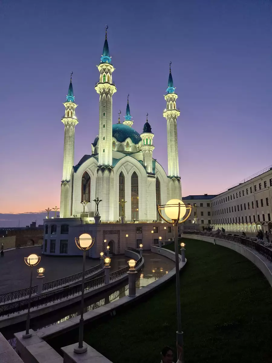 И конечно мы не могли вечером не вернуться к Казанскому Кремлю, чтобы увидеть его и мечеть Кул Шариф уже с подсветкой.