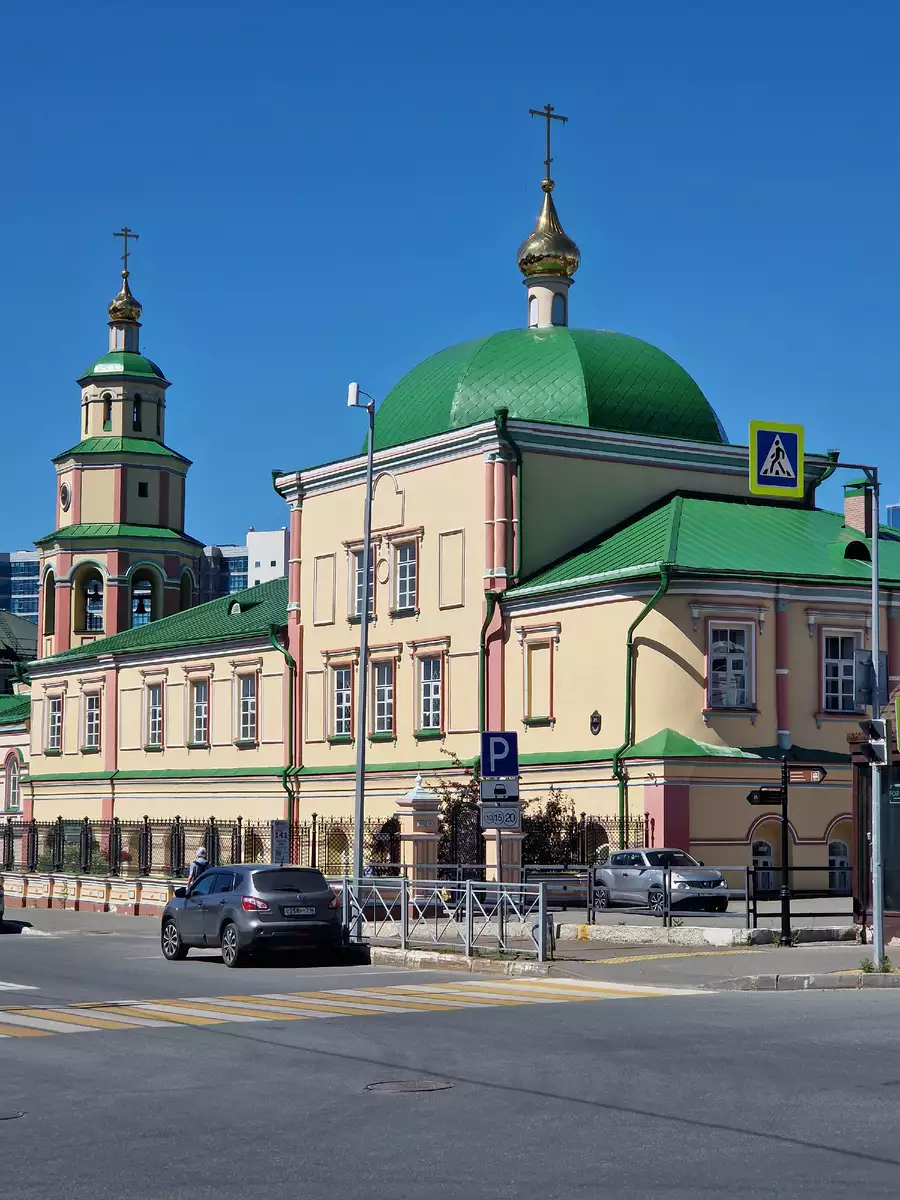 На пешеходную улицу мы вернемся позже и пройдем по ней, а пока немного смещаемся, рядом находится Воздвиженская церковь — действующий храм с богатым убранством и историей