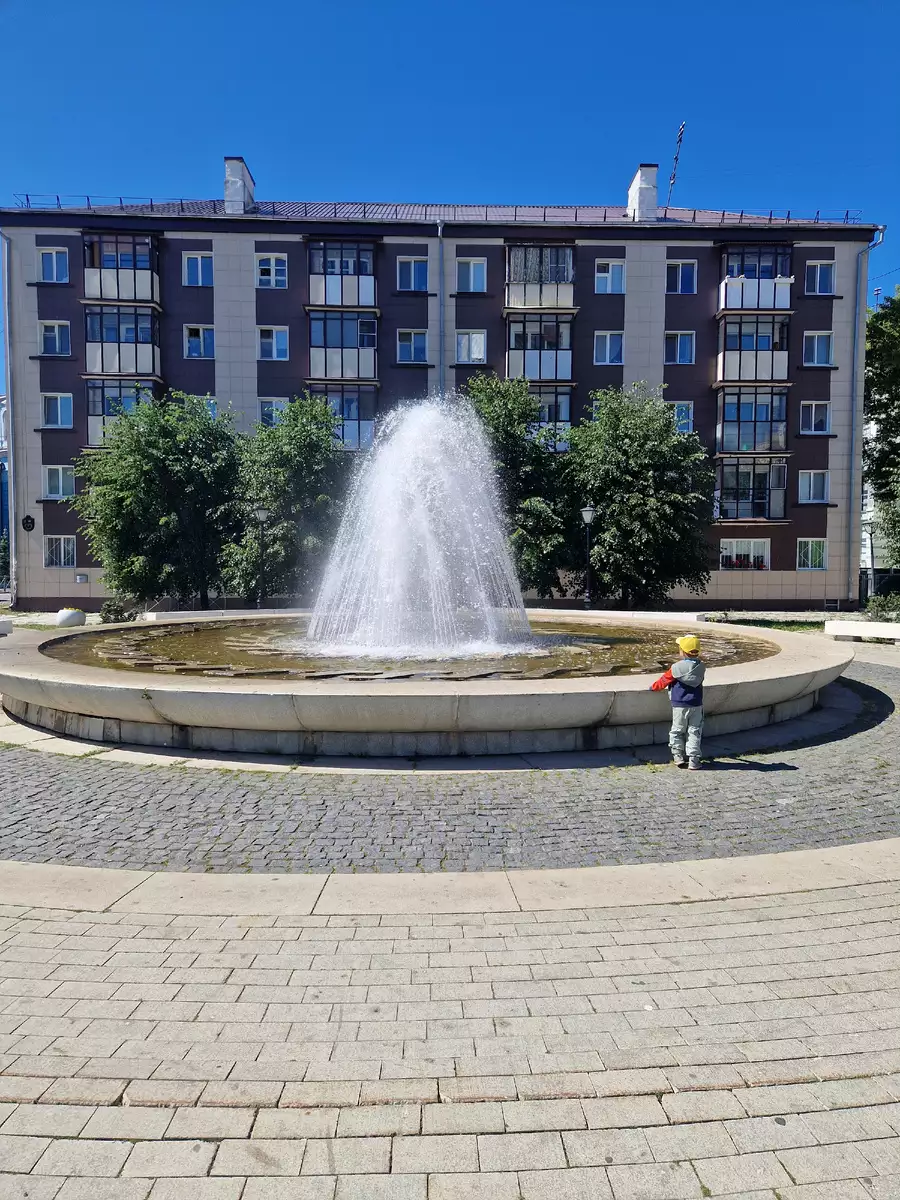 Отсюда можно сказать начинается пешеходная улица, которая очень длинная и идет вплоть до Казанского Кремля. Рядом с Ротонда находятся 2 фонтана, у которых мы немного отдохнули
