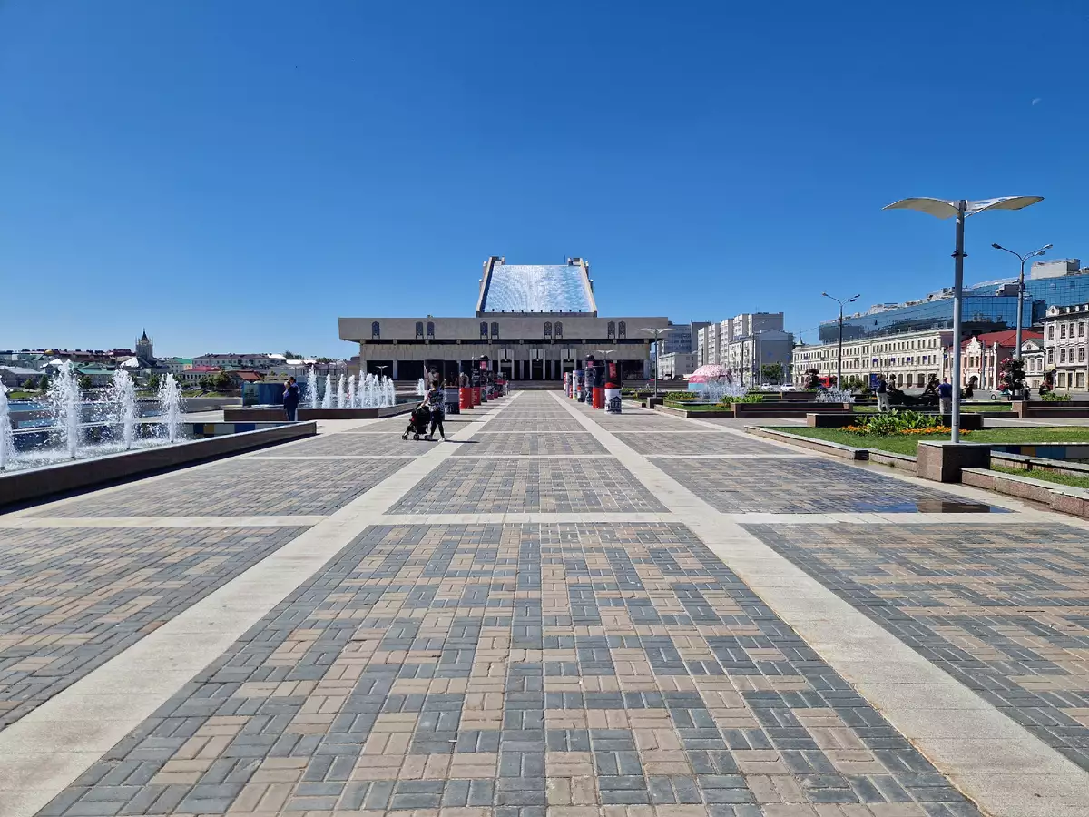 Кстати напротив театра расположен Казанский федеральный университет (КФУ) — один из старейших университетов России, основанный ещё в 1804 году