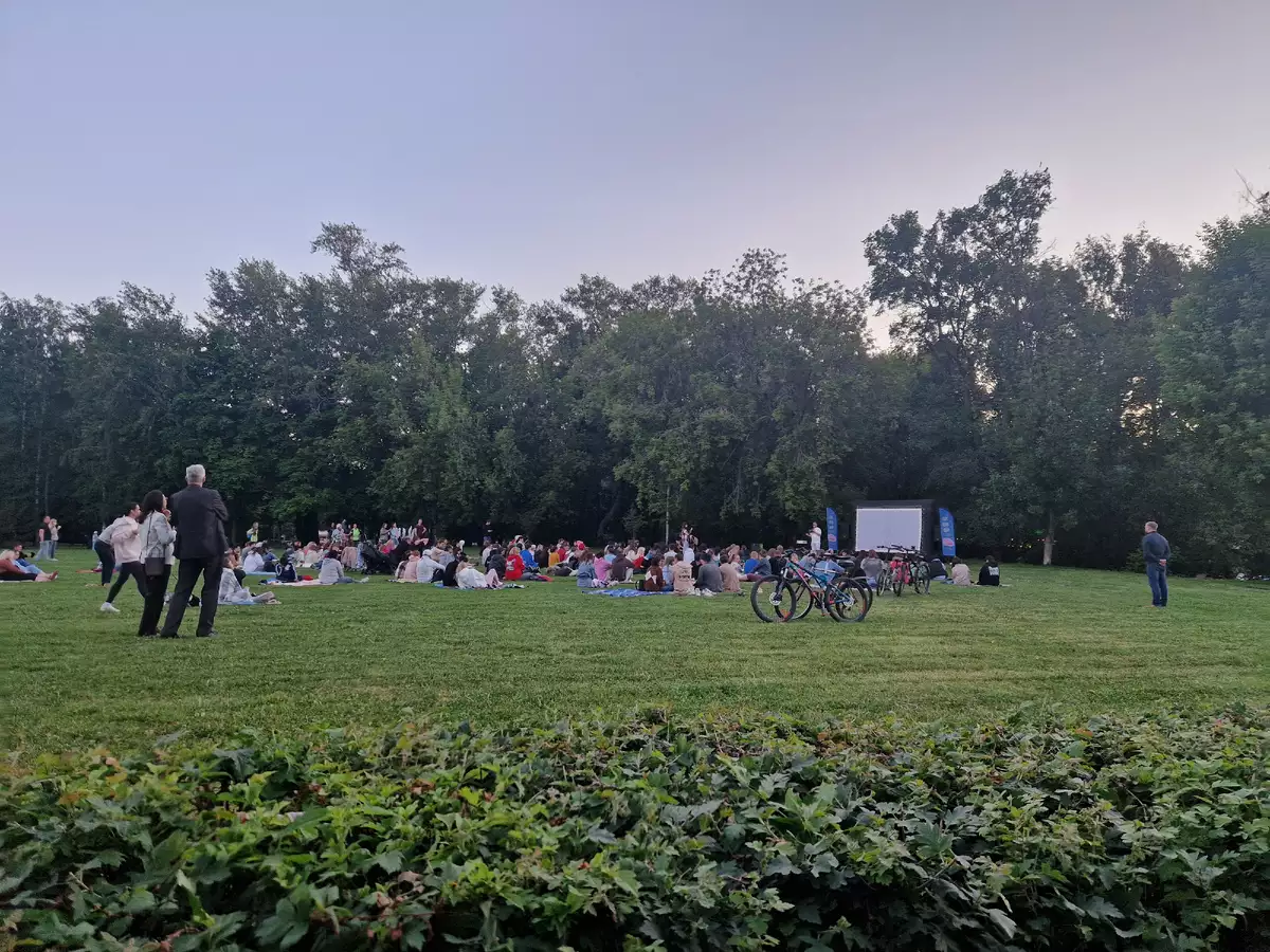 Приехали в парк мы уже под самый вечер. Здесь люди уютно устроились на траве и играли в какой-то КВИЗ.