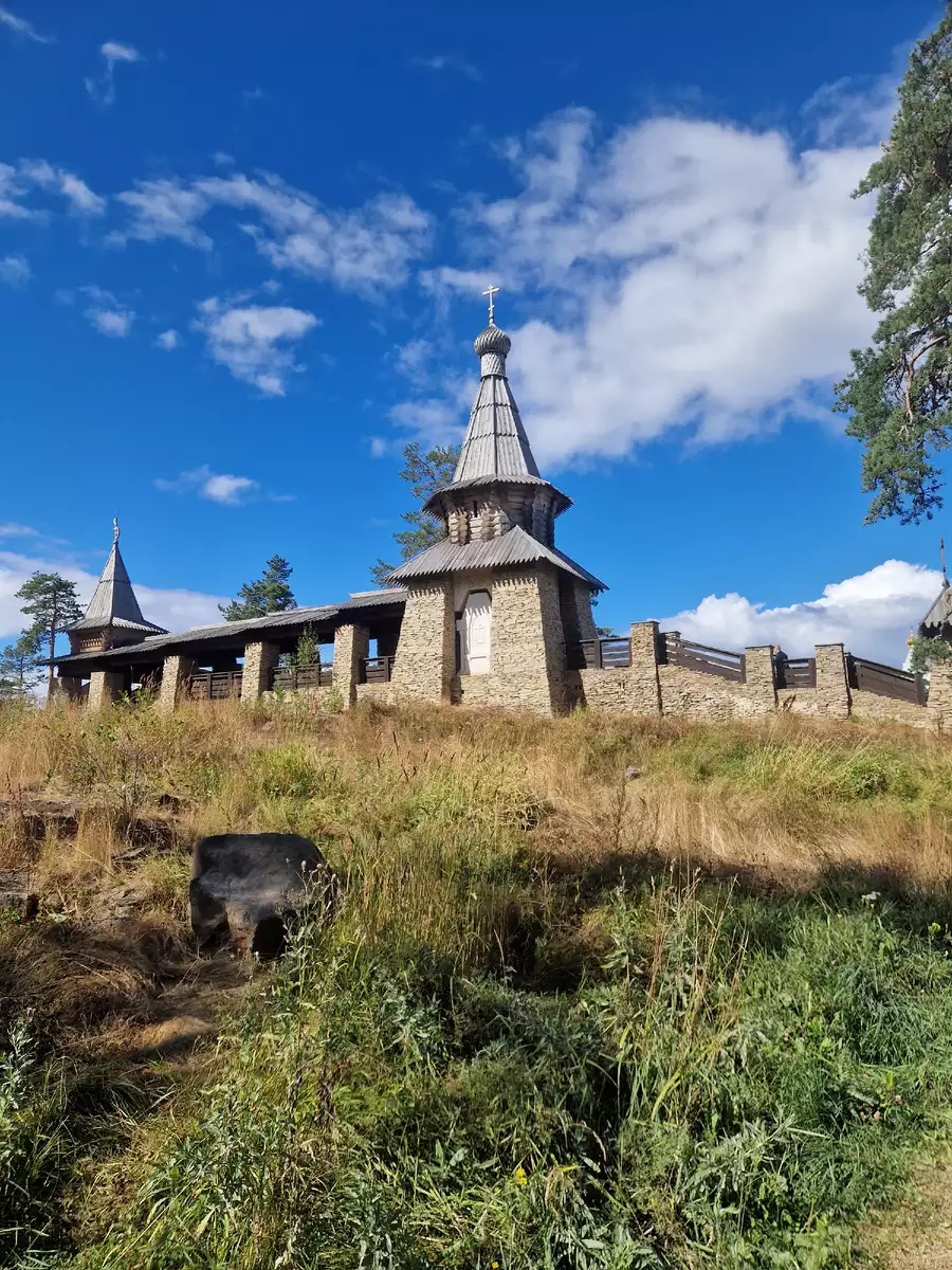 Нашей следующей точкой на острове был Никольский скит, расположенный в начале острова именно его видно было в самом начале, когда мы подплывали.