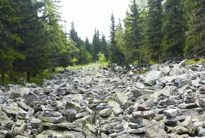 Многие туристы первую половину пути до курумника (горная порода) идут в сапогах, и доходя до подножья горы переобуваются в в кроссовки и далее уже покоряют вершину в этой легкой и удобной обуви. Так как тропа проходит по лесу, где течет горный ручей и тропу он пересекает не сколько раз. Там даже есть мостик. Во время и после дождя тропу размывает и она местами превращается в «кашу». Поэтому сапоги это выход из ситуации. При нашем восхождении была хорошая погода и сапоги нам не понадобились.