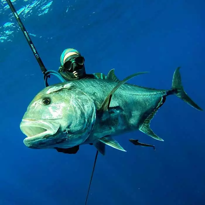 Наш герой любит поплескаться в уютных лагунах среди рифов в акватории Красного моря, а также вблизи берегов Тайланда, Индонезии, Филиппин, Сейшел и Малайзии, но больше всего гигантских каранксов живет у берегов Африки и у Гавайских островов. При своих охотах я часто встречал JT (так зовут рыбу за границей) около мысов, с обратным течением. Мощная рыба очень любит такие места, где бурлит вода. Там рыба караулит свою добычу и делает засаду на мелкую рыбёшку. Лично я охотился на каранкса (Giant Trevally) в Индонезии, в Камбоджи, в Эмиратах, на Сейшельских островах. Так же единично встречал рыбу на Кипре, в Хорватии, в Черногории. Подводная охота на этого хищника очень захватывающая и не предсказуемая. Поэтому она и завораживает и вдохновляет ныряльщика. Помню один случай, который произошел со мной в Индонезии (о. Бали) когда мы, втроём охотились около мыса с сильным и обратным течением. Губина около 8-10 м. Я нырнув в водоворот падаю дальше ко дну, попал в турбулентность и кое как держал своё тело в подводном горизонте, и тут снизу из глубины на меня вышла огромная стая каранксов (около 40-50 особей) примерно 30-40 кг. веса и они закружились в водовороте вокруг меня. Я был загипнотизирован этим моментом, что даже забыл начать на курок и только восхищался их мощью, грацией, силой и размером. Это было изумительно и обалденно! Но через 3-4-5 сек. ко мне вернулось сознание и я стал выцеливать ближнего, но ружье стояло на предохранителе и не смог сделать выстрел. А после того, как я снял предохранитель и навёл на цель свой арбалет, стая так же мгновенно растворилась в голубой бездне. Больше рыбы на меня не выходили, но я знал, что они, где то рядом. Так как под водой я слышал их мощные хлопки (атака на рыбу).