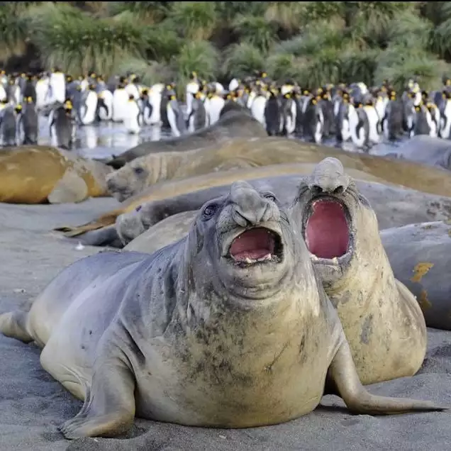 Поверхность этих островов покрыта зелёным мхом или океаническими лугами с огромной популяцией тюленей, морских котиков и слонов, пингвинов. Когда спускаешься со шлюпки на остров, его переполняет гул этих счастливых и свободных животных, они и их детеныши бегут знакомится и с любопытством рассматривают гостей.