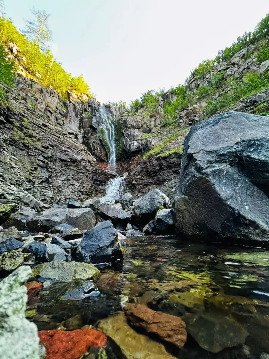 После сытного обеда мы отправились в небольшой трек вдоль реки к ещё одному водопаду на притоке Южного Нералаха. Некоторые шутят, что водопады начинают надоедать – но разве можно устать от такой захватывающей красоты?