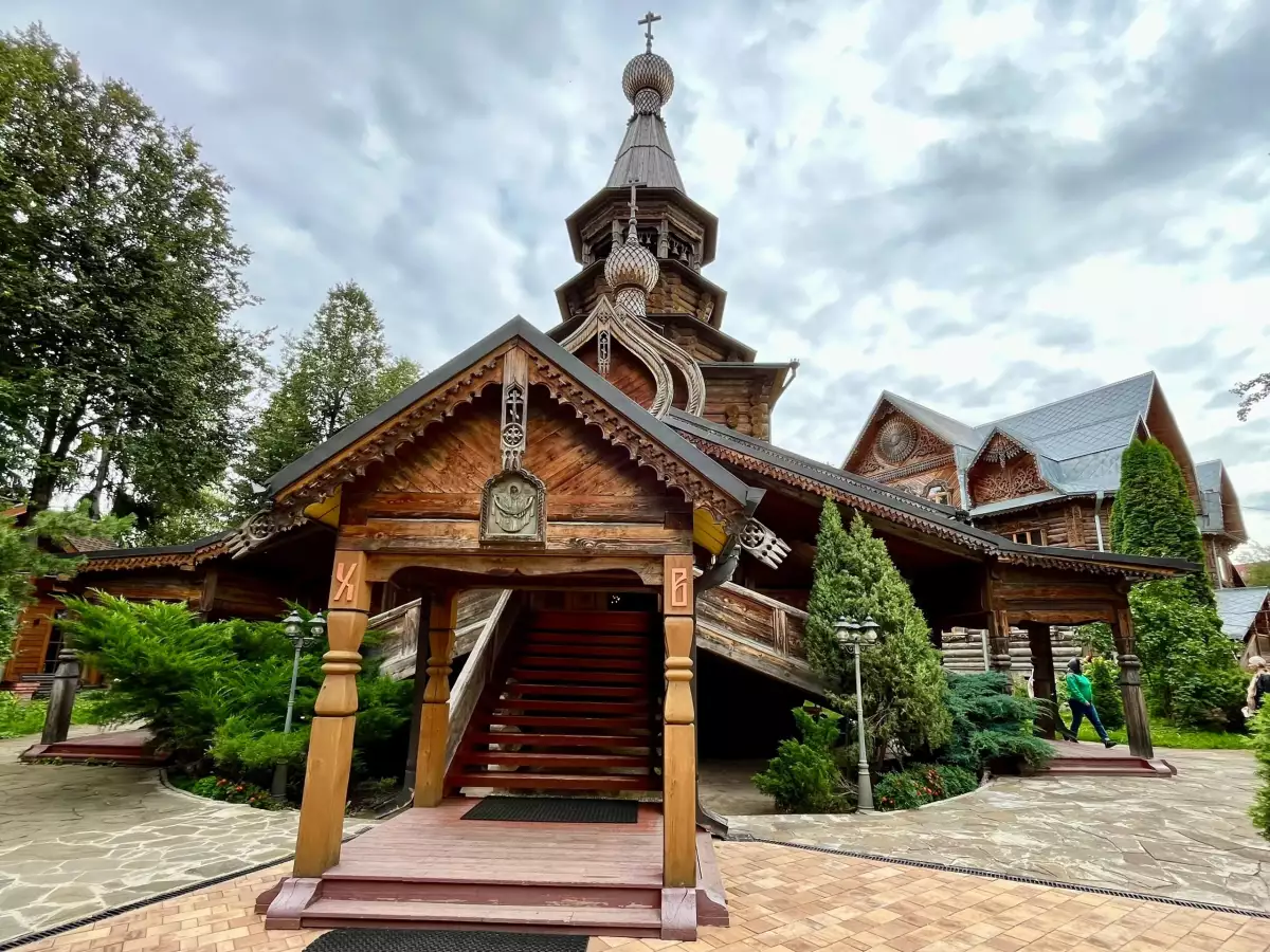2. Храм Покрова Пресвятой Богородицы на Десне. Это настоящий новодел, хотя по архитектуре сделан в стиле старины. На первый взгляд и не скажешь, что храм новый, ведь он напоминает Церковь Покрова Пресвятой Богородицы на Высоком в Боровске, построенную в 1621 году.