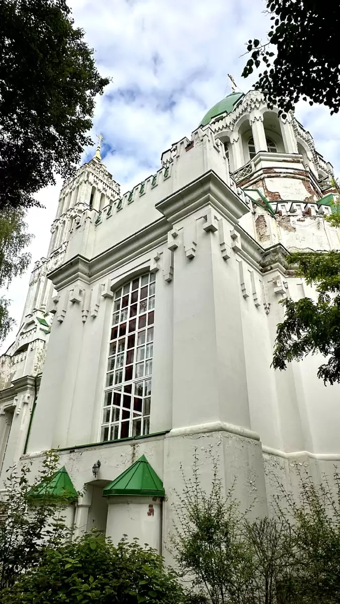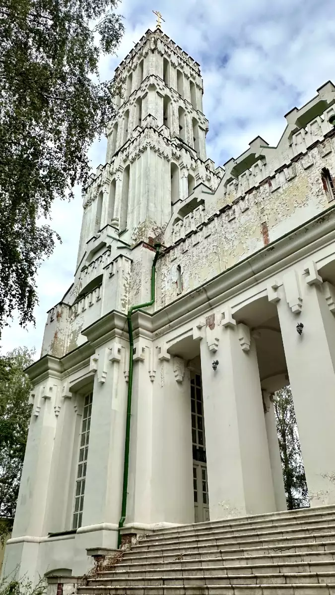 1. Троицкая церковь Князе-Владимирского монастыря в Филимонках сразу поражает своими размерами и необычностью. Колокольня, как свеча, видна издалека – её невозможно не заметить. Я нигде не видела подобной архитектуры, но, как рассказала женщина в церковной лавке, архитектор был французом, поэтому церковь получилась такой необычной. Обитель была учреждена в 1891 году при кладбищенской церкви. С 1861 по 1888 годы, по заказу В.Б. Святополк-Четвертинского, владельца усадеб Валуево и Филимонки, и по проекту И.Ф. Тибо, была построена Троицкая церковь в романо-готическом стиле.
