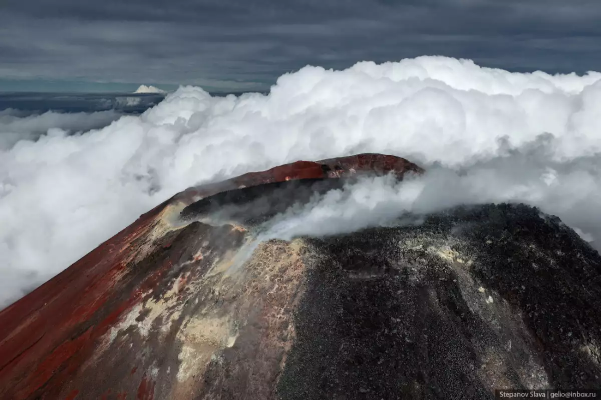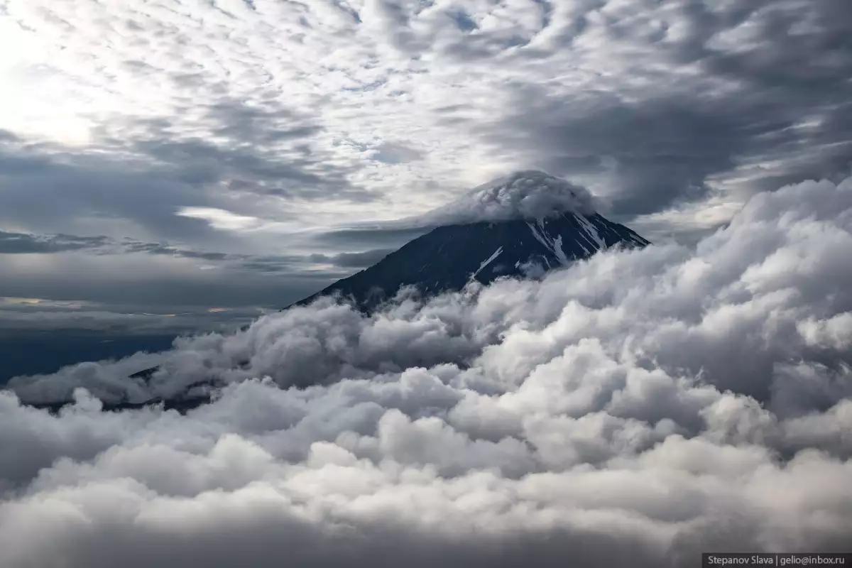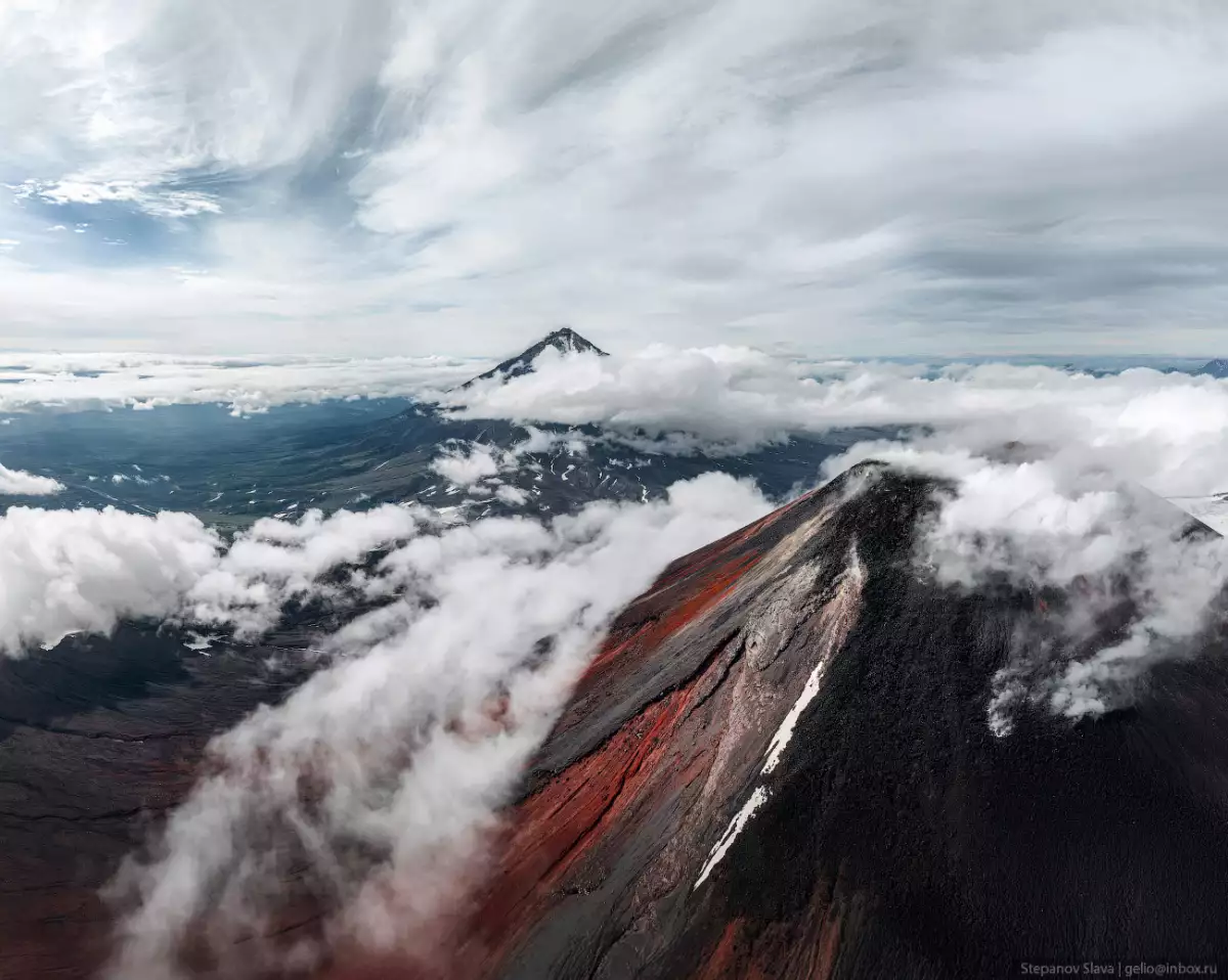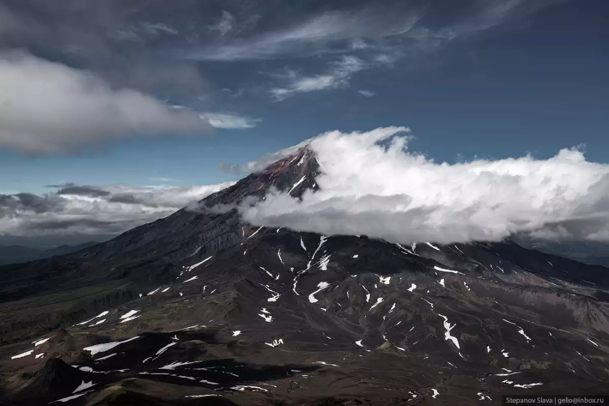 6. Сейчас на Авачинской сопке относительно спокойно – активны только фумаролы. Они выделяют горячие газы, над вулканом стоит облако сернистых испарений.
