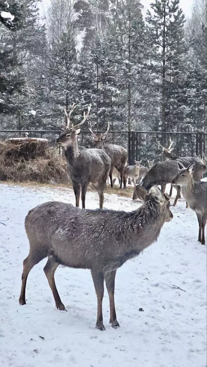 На обратном пути, мы заехали на оленьую ферму «Бархатные рога». Они уже собирались закрываться, но нам повезло: удалось ненадолго задержаться и пообщаться с разными животными. Олени здесь ручные, очень любопытные и смотрят своими огромными глазами, берут лакомство из рук, можно погладить. Это был такой тёплый, живой и добрый финал дня, полного скал и истории.