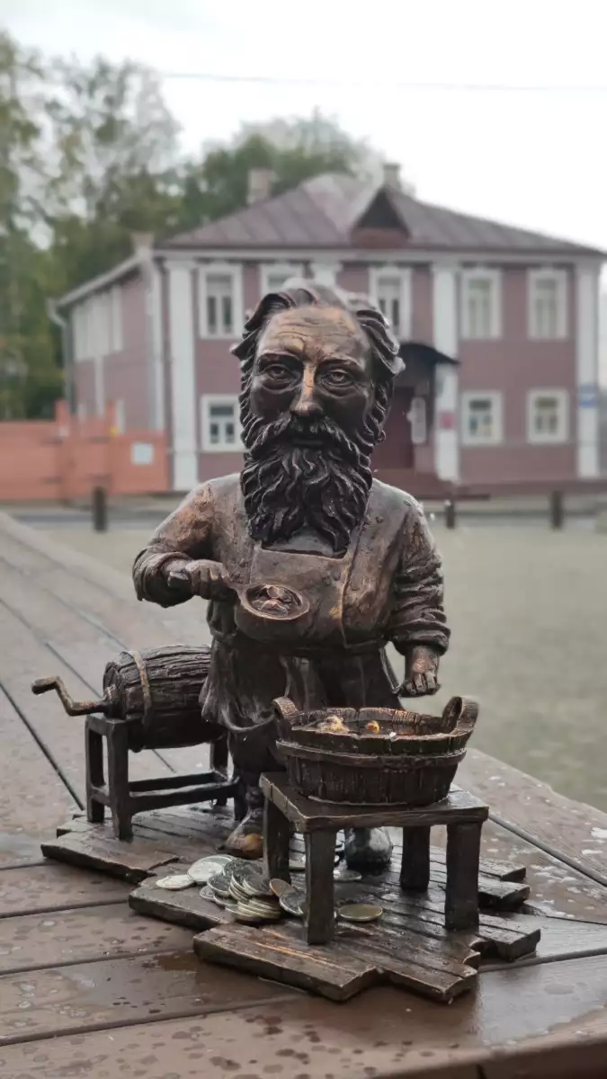 Что это за зверь? Купчики — это примерно 30 см бронзы, купцы и купчихи, расставленные по городу в рамках проекта "Купчики на туристическом маршруте", одобренного губернатором Георгием Филимоновым. Каждая фигурка — как мини-музей на ногах: отражает торговлю, ремесло или промысел, бытовавшие в Череповце в XVII–XIX веках. Красиво, компактно и фотогенично.
