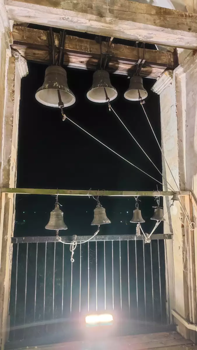 И тут, представьте, на самокате, в простых трениках и толстовке, к дверям колокольни подъезжает добродушный бородатый дядька. Сразу располагает: шутит, улыбается, зовёт «заходи, посмотри». Я не испугалась — тут же заподозрила в нём местного священника из тех самых отзывов. Оказалось, это отец Иаков. Я махнула рукой и попросила благословение подняться на колокольню — получилось: «Иди, дочь, благословляю».