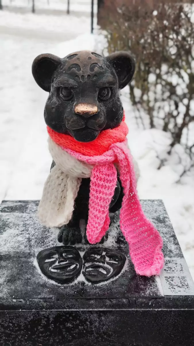 • А 25 января 2025 года на ступеньках только что открывшегося регионального Дома молодёжи установили ещё одну скульптуру барсика- М, (57.816740, 28.323371) ставшую популярной точкой для фото.