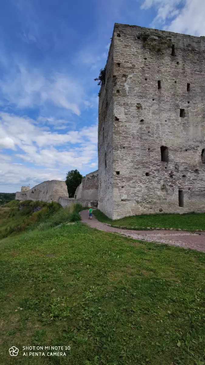 В XIV веке псковский посадник Селога вместе с жителями перенёс город на Жеравью гору, где и возникла каменная крепость. Её план повторяет изгибы рельефа, образуя неправильный треугольник — необычная, запоминающаяся форма, которой трудно не восхищаться. Стены крепости достигают 4–5 метров в толщину, их общая протяжённость около 850 метров, а до наших дней дошли шесть мощных башен — как будто сторожа времени.