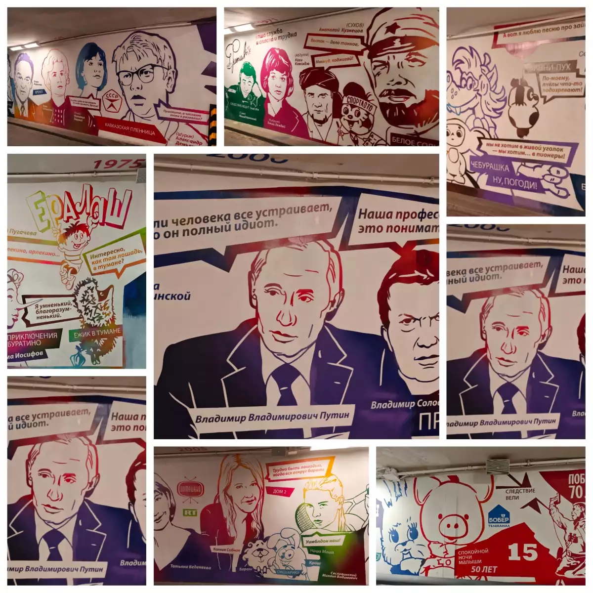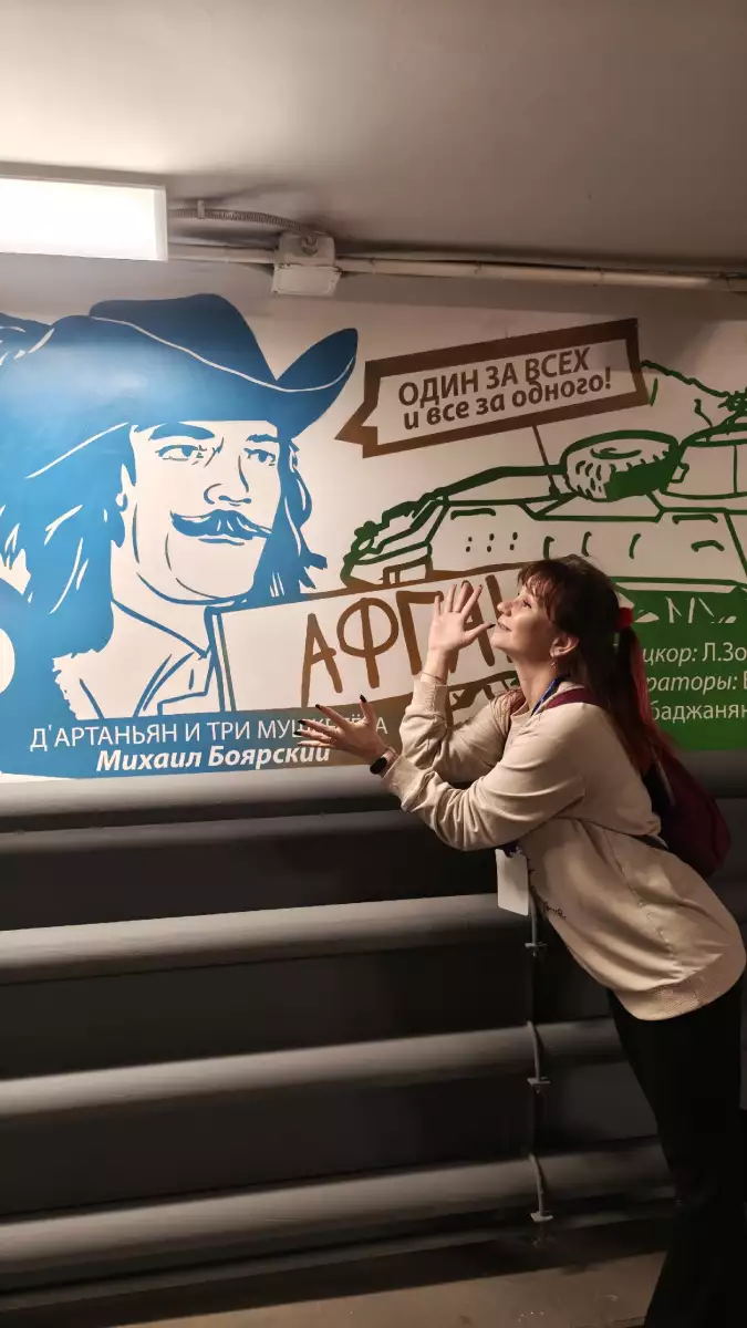 И вишенка на торте — переход во второе здание, оформленный граффити, которые рассказывают о жизни телецентра,и небольшой уголок, где хранятся остатки музея подарков Михаила Якубовича: маленькие сувениры, игрушки и предметы с личными историями.