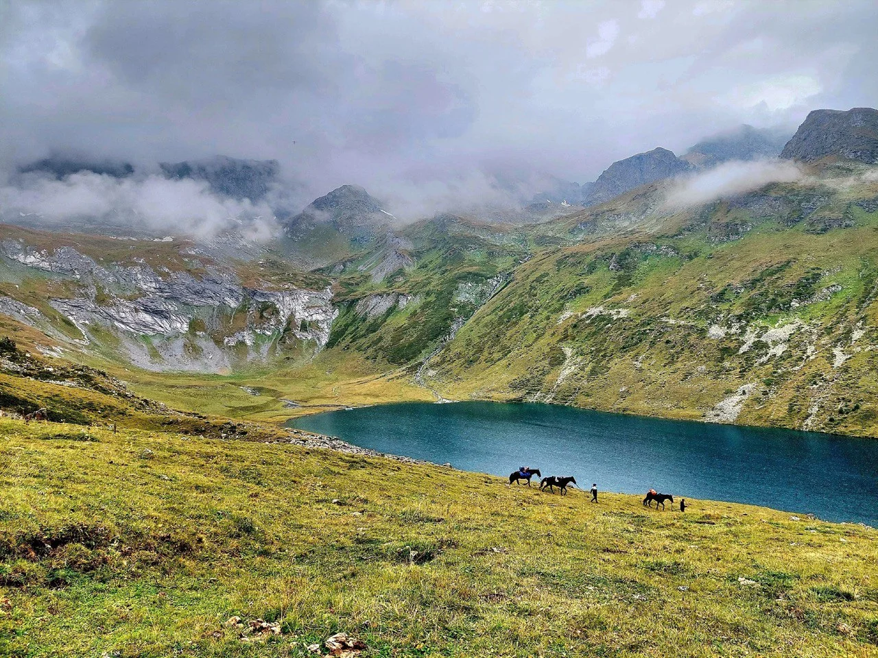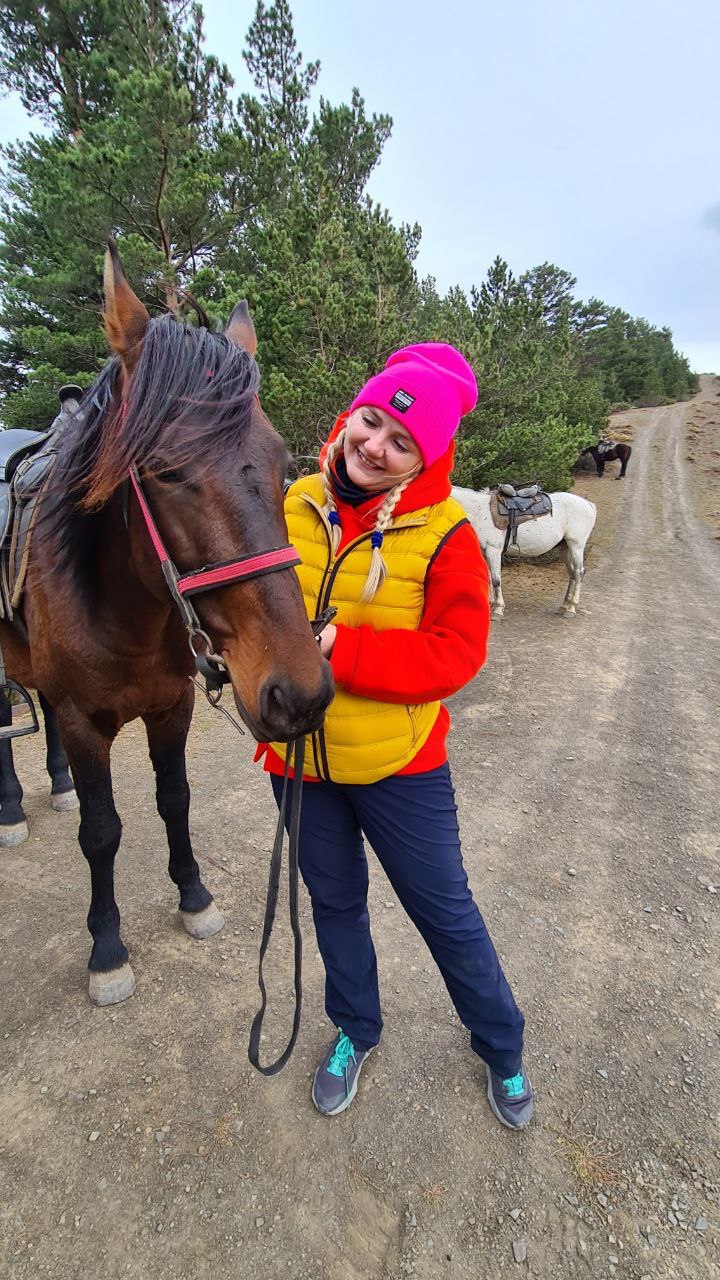 Завтрак, сборы и очередной конный выезд. Сегодня нас ждут высокогорные озера горы Орленок. Они не большие, но очень живописные и уютные. Верхом поднимаемся до подножия горы и оставляем лошадей отдыхать. Трекинг к озерам ( туда-обратно) займёт 3-3,5 часа. Подъем крутой, но это того стоит. Само озеро находится на высоте 2350м и прячется среди пихтовых деревьев. Далее, среди долины, в камнях расположился ещё один чудесный голубой водоём. Гуляем на лёгке. Перекусим внизу. На крутых спусках коней ведем в поводу.