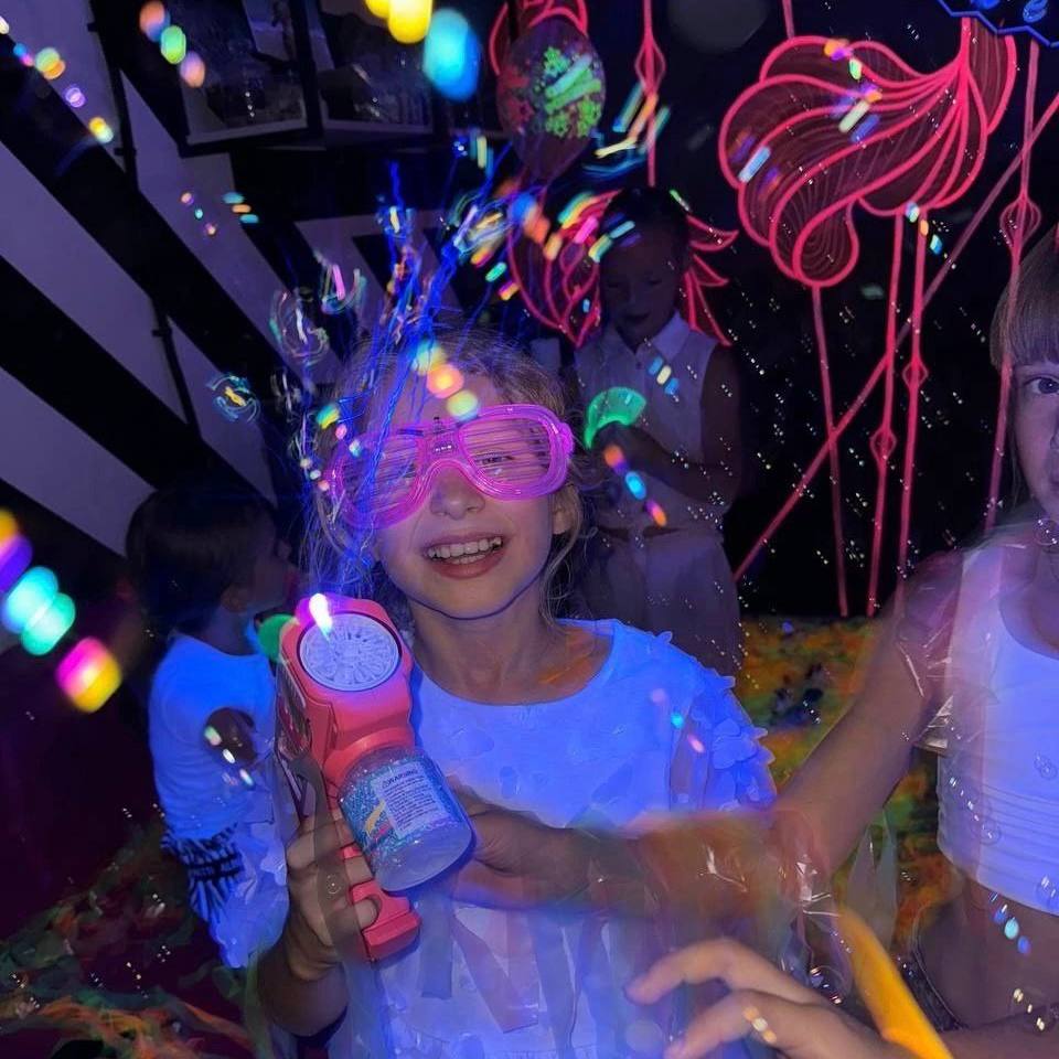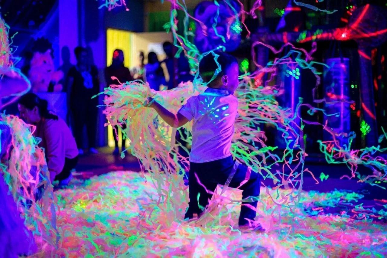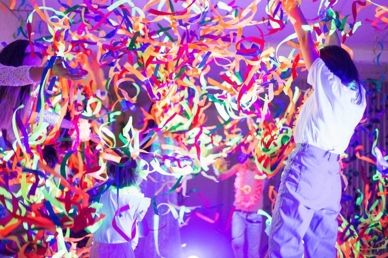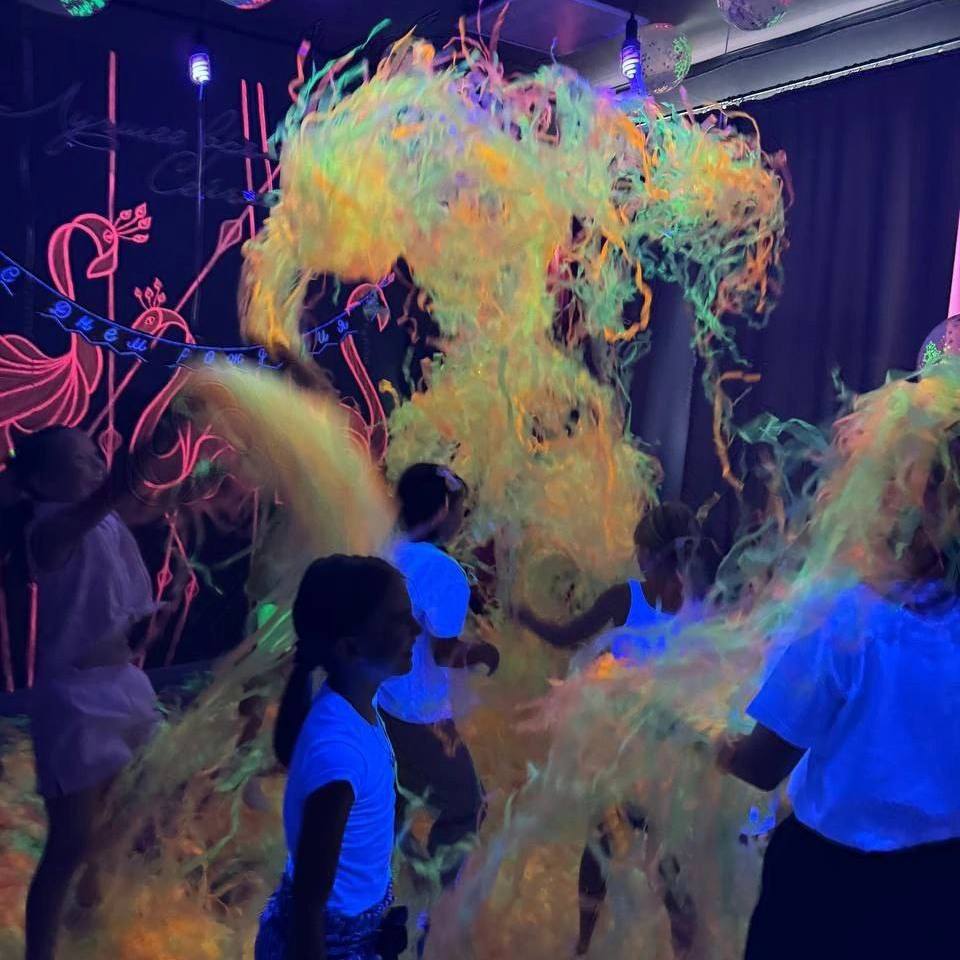 Устройте бумажную неоновую дискотеку в зале со специальным свето-оборудованием под сопровождение любимых треков, цветомузыки, лазеров и дым-машины.