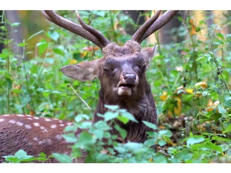 Сперва не вполне представляешь, какие впечатления ожидают в пути. Но потом из окна машины вдруг увидишь, как могучий пятнистый олень-рогач нарисуется совсем близко на холме невероятным живописным силуэтом. А следом, прямо наперерез машине, мощно потечет шумящее, дышащее, волнующееся стадо – через распадки ручьев, через зеленые горбы полей. Потом животные, не слишком боящиеся человека, остановятся, и вновь не поверишь своим глазам – так они близко и притом – на воле. Это настоящее классическое сафари – как в африканской саванне, только перенесенное в нашу Среднерусскую равнину.