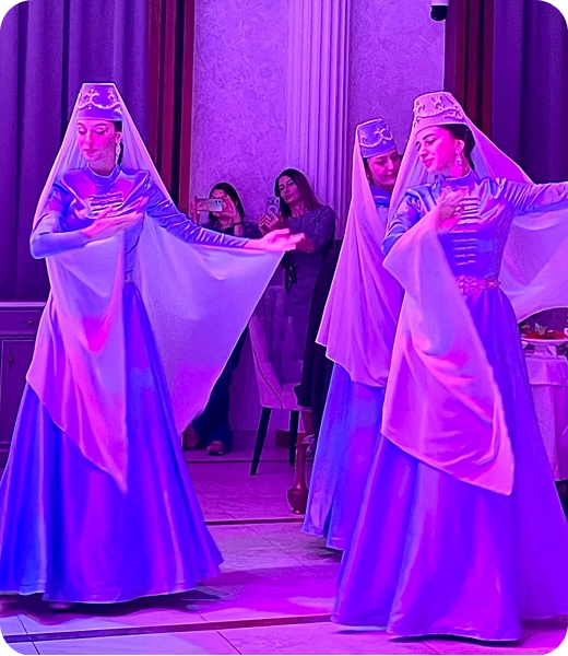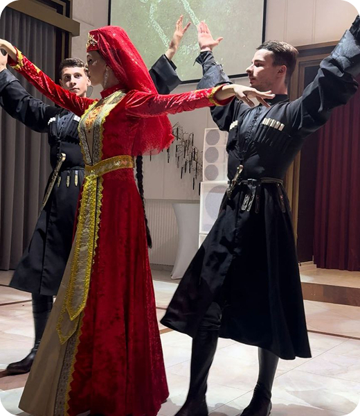 19:00 Вы пребудете в ресторан «Кавказ Hall» в г. Владикавказ, где состоится «Аланский вечер» (ресторан может быть заменен на равнозначный в случае непредвиденных обстоятельств), этно — гастрономическое шоу, уютное национальное застолье (алкоголь включен), национальная кухня Северной Осетии, знаменитые Осетинские пироги, выступление народных вокально-инструментальных коллективов Республики Северная Осетия – Алания, выступление национального Ансамбля «Мамисон», национальный Ведущий (тамада), мастер класс по национальному Осетинскому танцу «Симд».