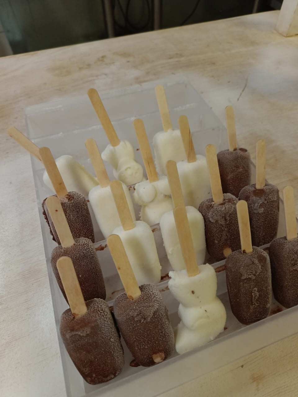 Наша программа - это интерактивный рассказ + демонстрация работы аппаратного оборудования + дегустация + мастер класс по глазированию эскимо. Суть глазирования заключается в том, что каждый гость получает заготовку из пломбира и сам обмакиварт ее в растопленный бельгийский шоколад.