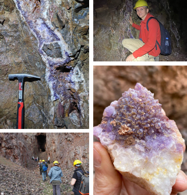 Посещение карьера и подземного аметистового рудника в сопровождении главного геолога и горного проходчика месторождения. Поиск друз яркого аметиста прямо в стенах выработки.