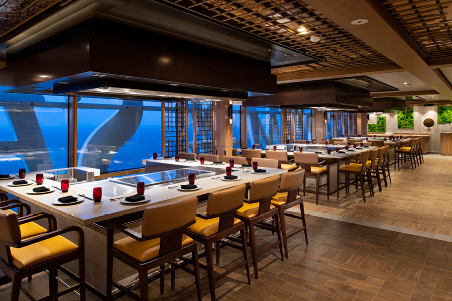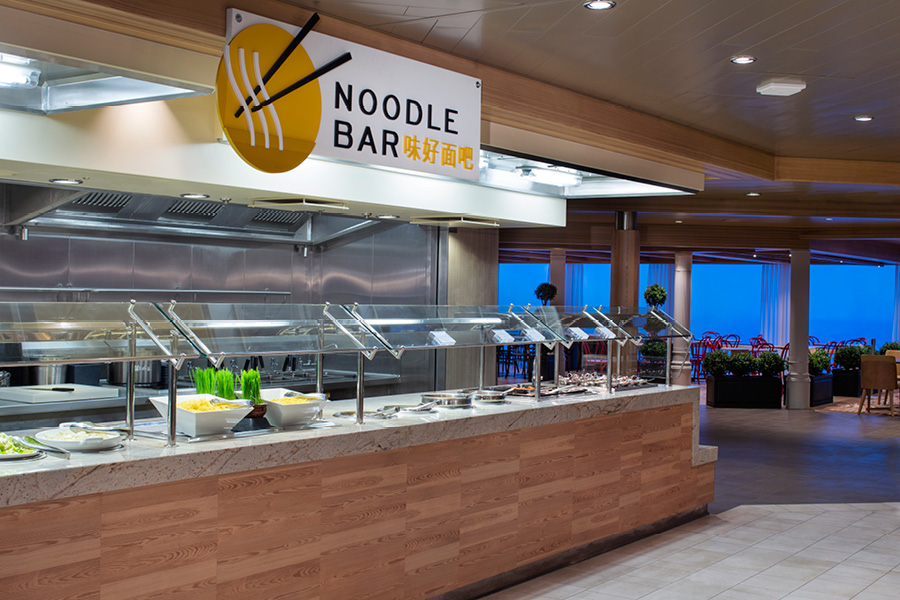 Spectrum of the Seas предлагает на выбор несколько бесплатных ресторанов. Это впечатляющий многоуровневый Main Dining Room с 1844 местами, c разнообразной китайской и западной кухней. И The Windjammer Marketplace – предлагает блюда китайской и западной кухни, включая пасту, пиццу и японский теппаньяки.