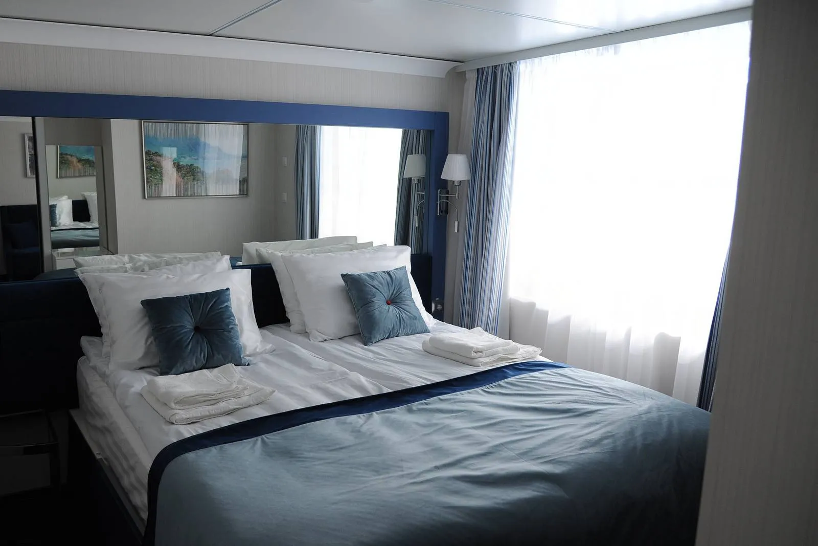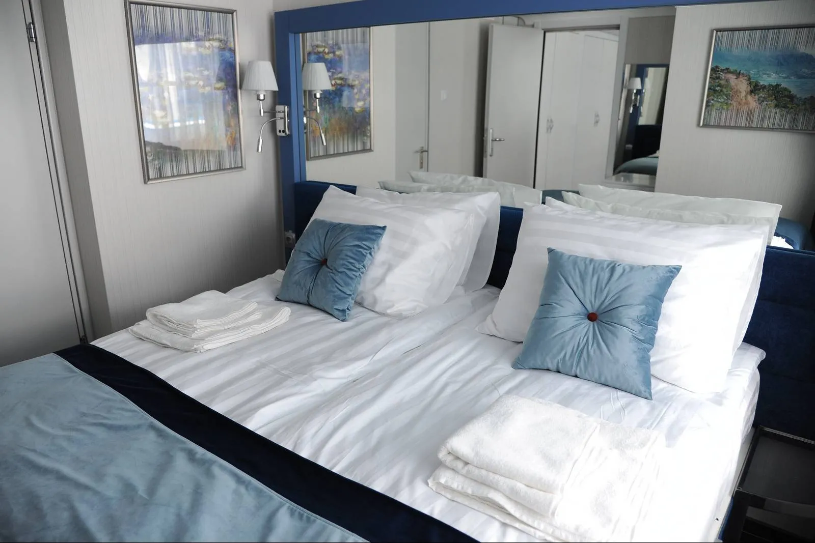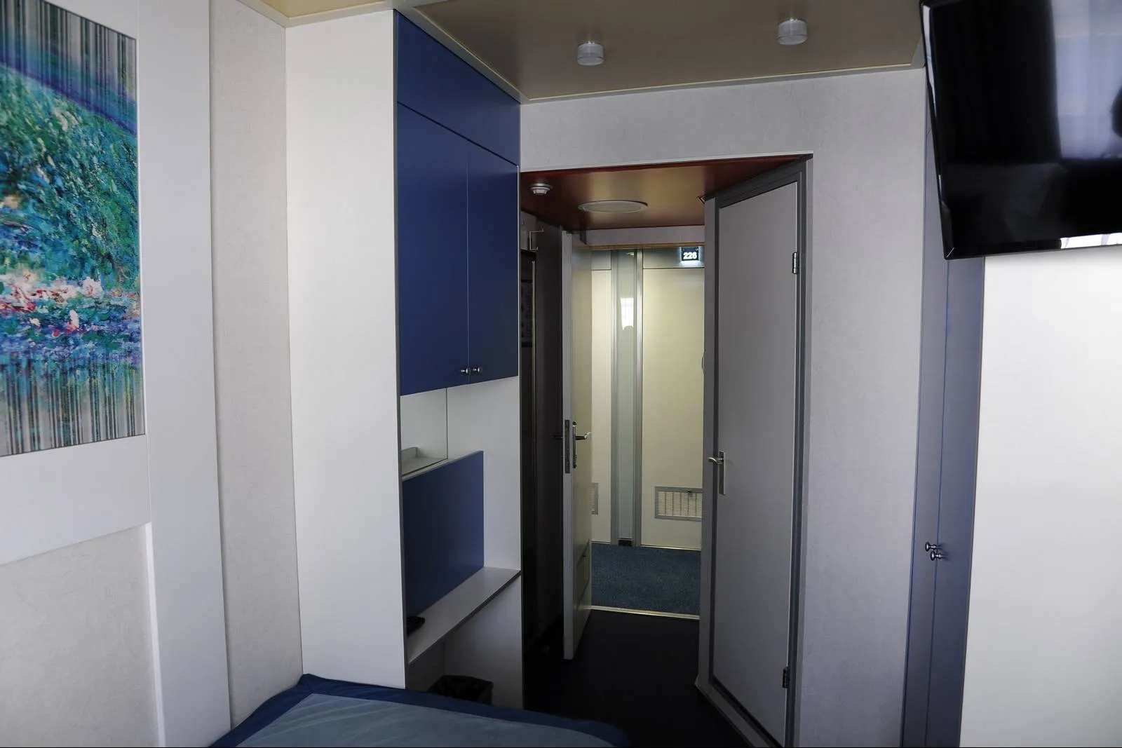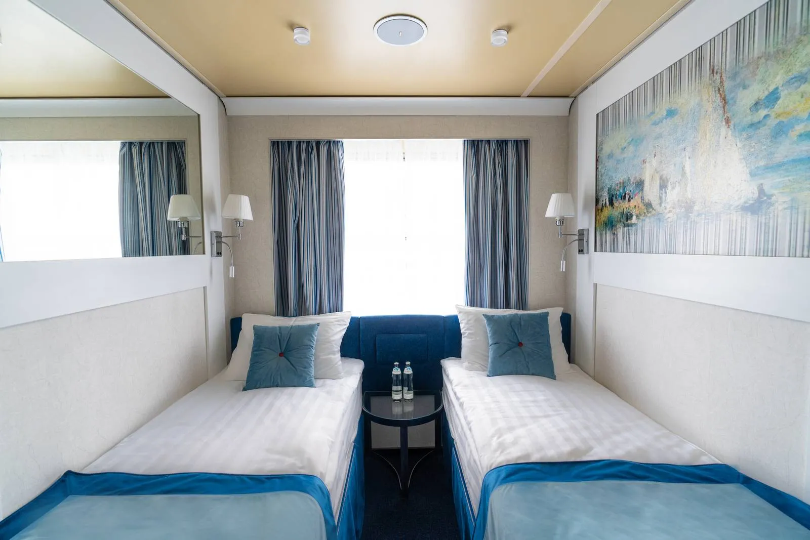 Каюта оборудована двумя кроватями, которые нельзя сдвинуть.