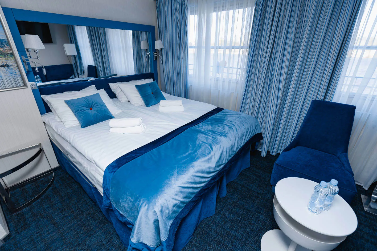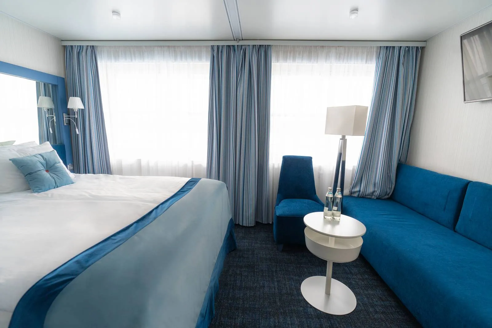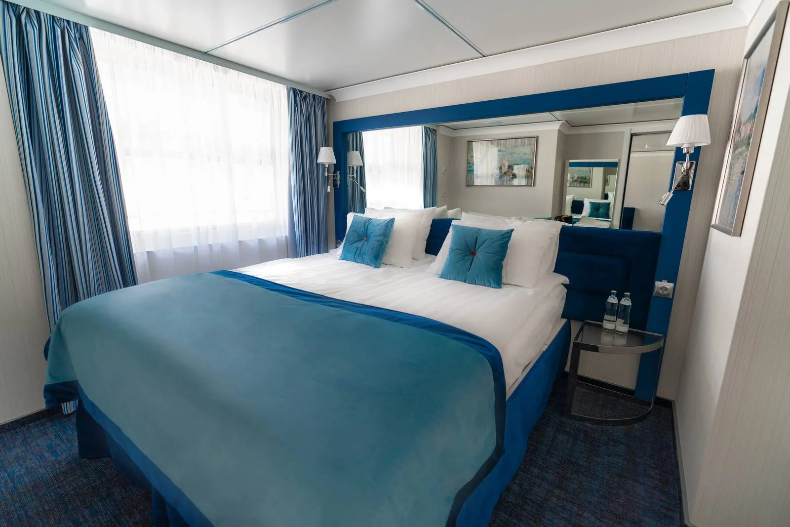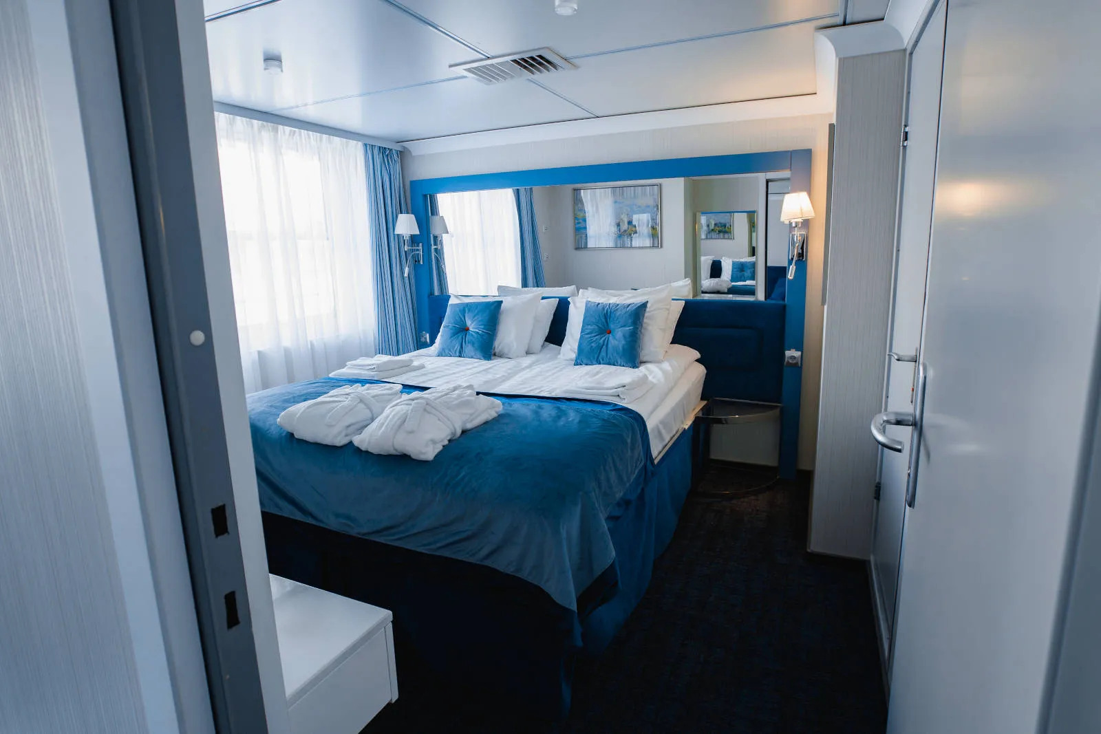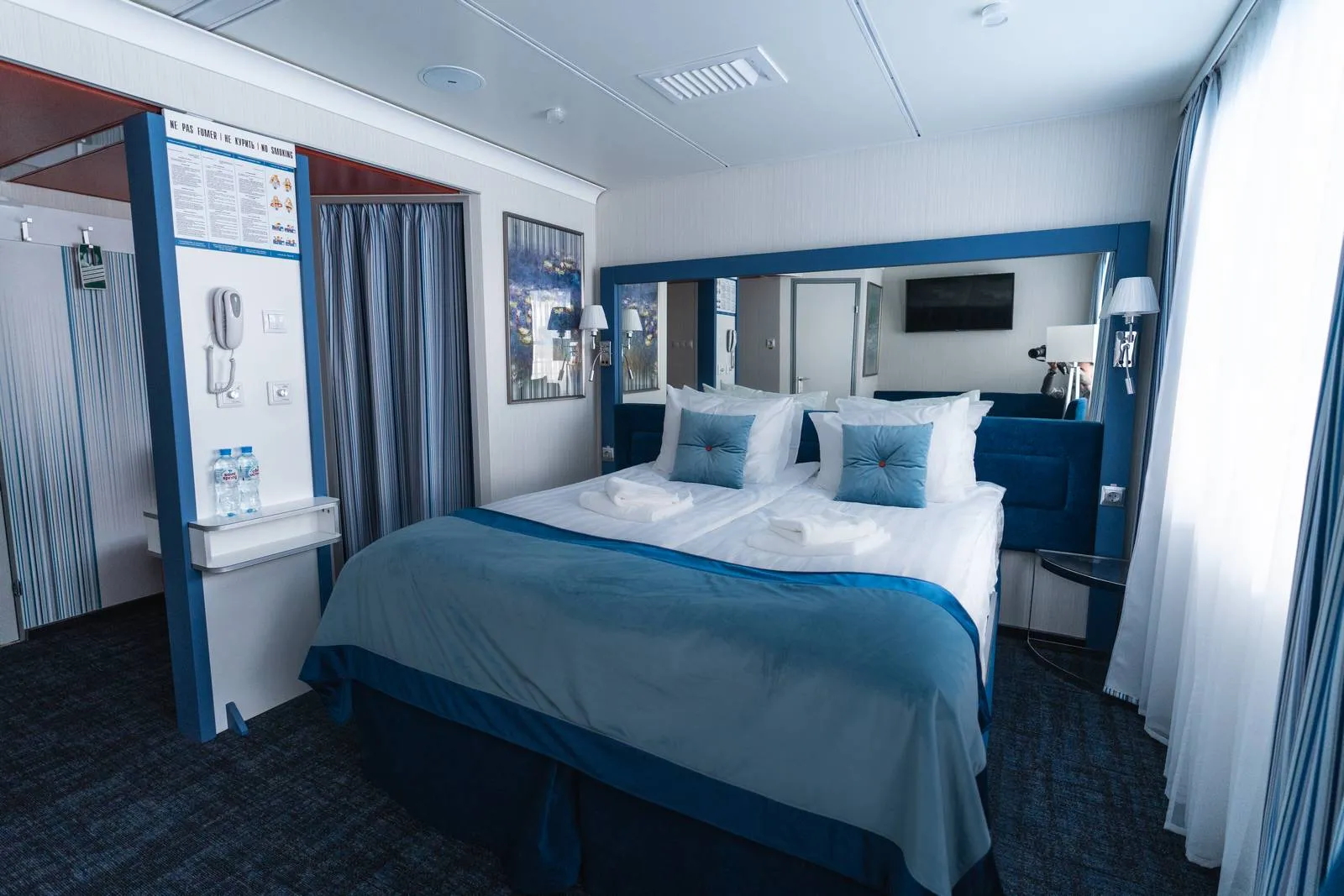 Уютная каюта с изысканным интерьером, оборудованная большим обзорным окном, рассчитанная на размещение до двух пассажиров.