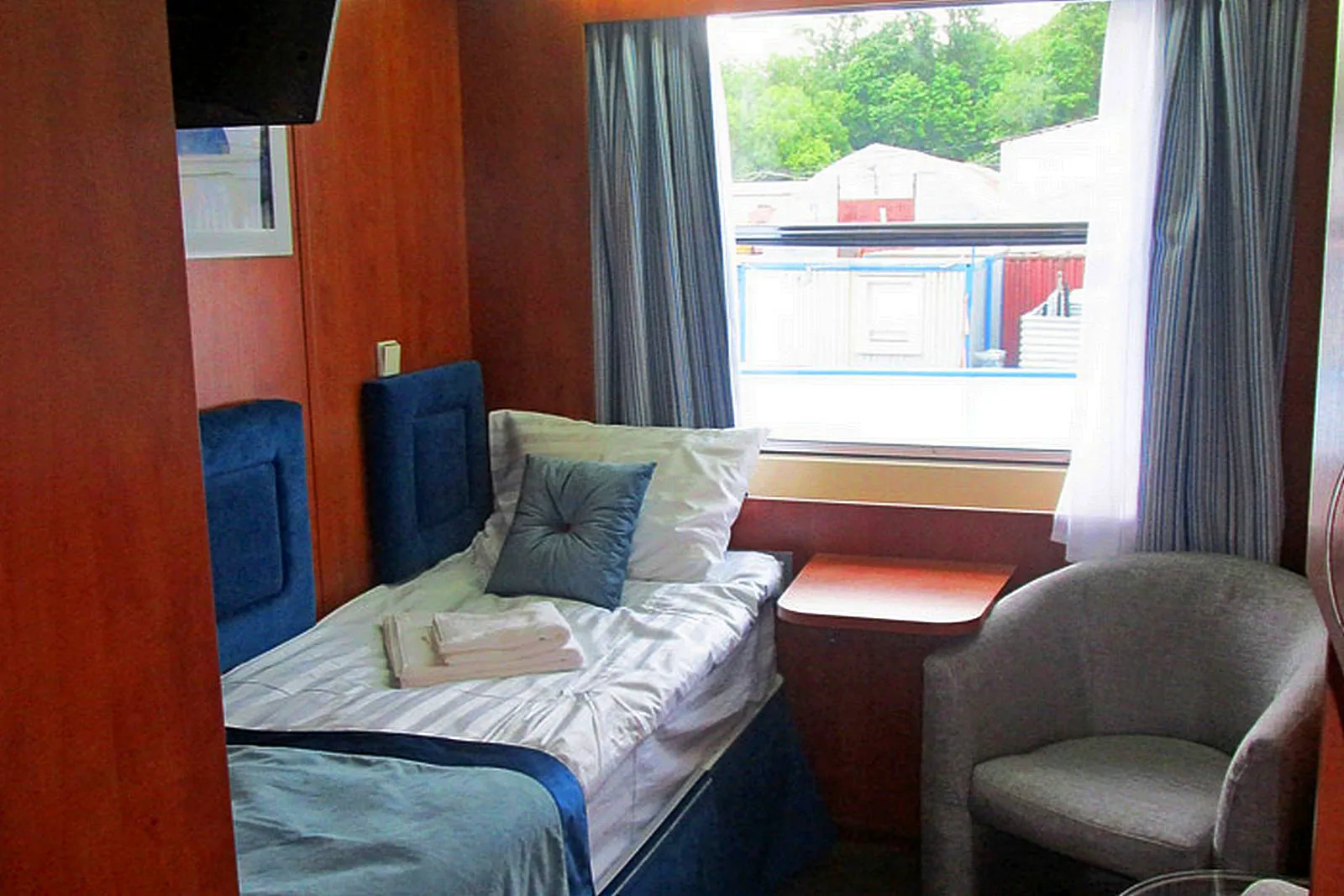 Уютная каюта, оснащенная всем необходимым для комфортного отдыха. Оборудована большим обзорным открывающимся окном. Рассчитана на размещение одного пассажира.