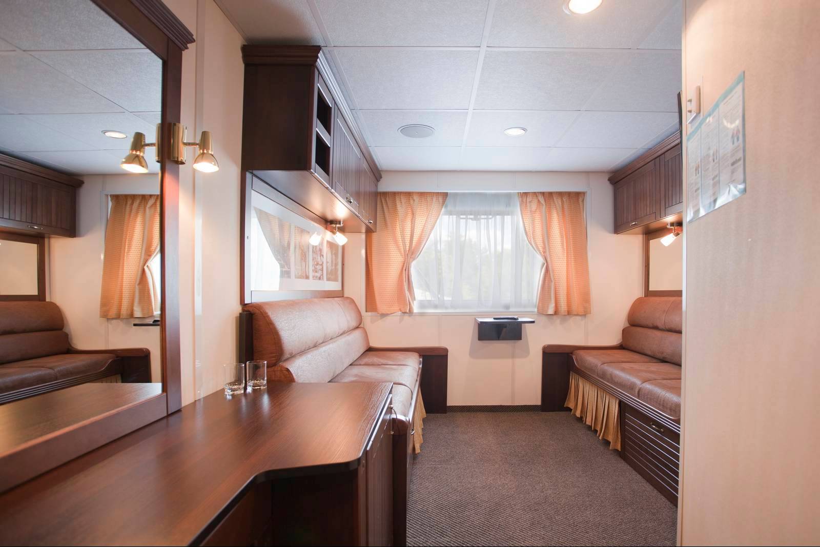 Есть возможность размещения третьего пассажира на дополнительном месте (ребёнок до 14 лет с оплатой питания 3000 руб. в сутки или взрослый пассажир со скидкой 30% от базовой стоимости). Дополнительное место – диван.