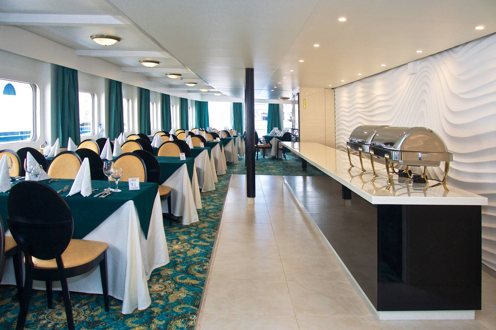 На борту открыты ресторан, два бара, салон красоты, библиотека и конференц-зал, на солнечной палубе стоят лежаки для загара. Работают медпункт, сувенирный киоск и прачечная, куда можно сдать одежду во время долгого путешествия.