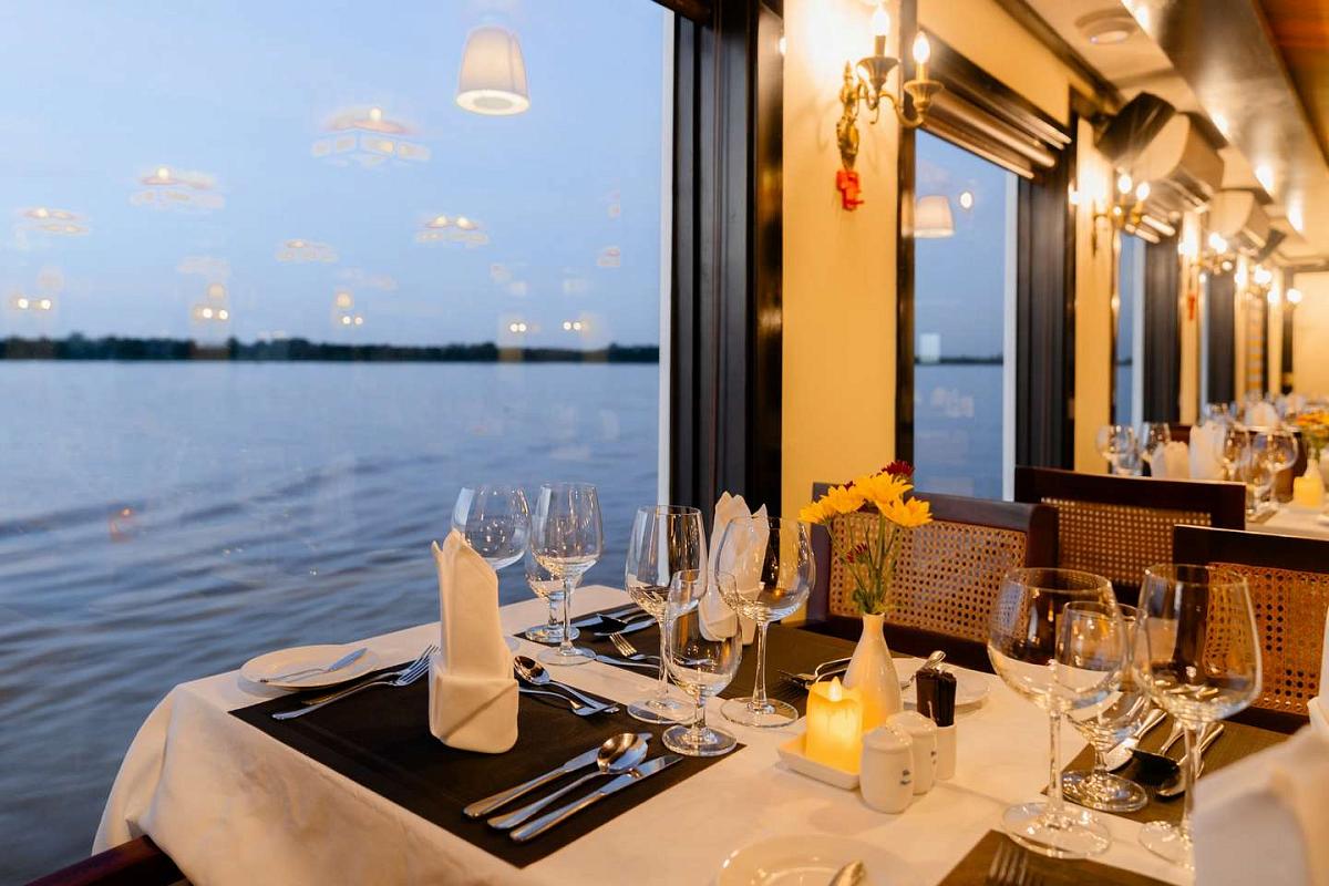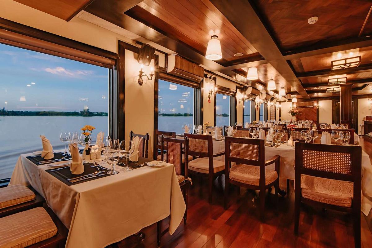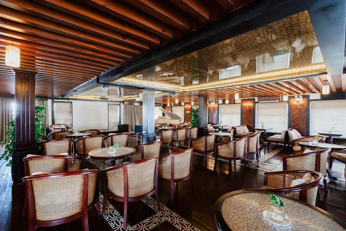 46 просторных кают с панорамными окнами и балконами, изысканная кухня с блюдами вьетнамской и камбоджийской кухни, спа-салон – всё создано для того, чтобы вы чувствовали себя по-королевски.