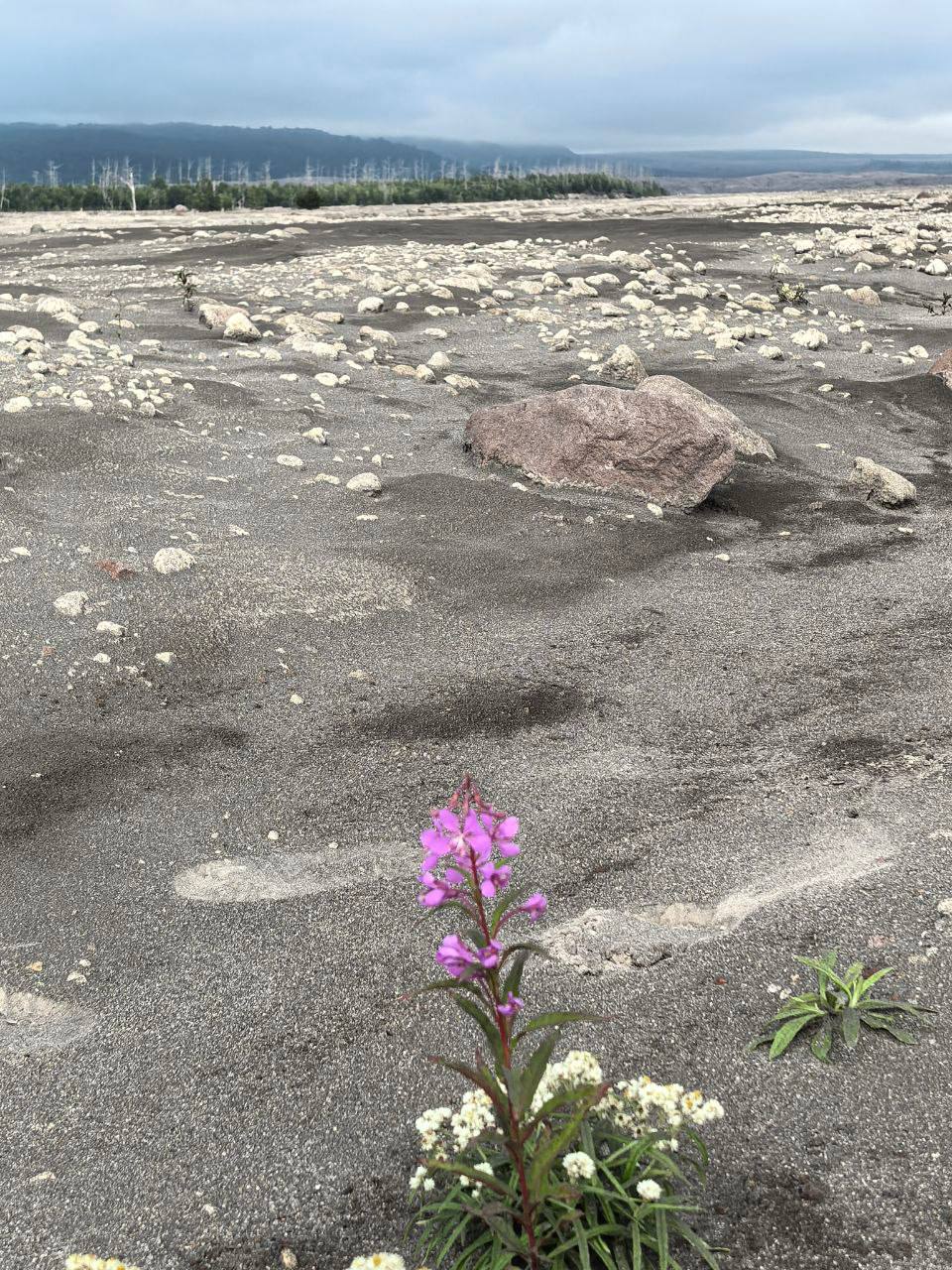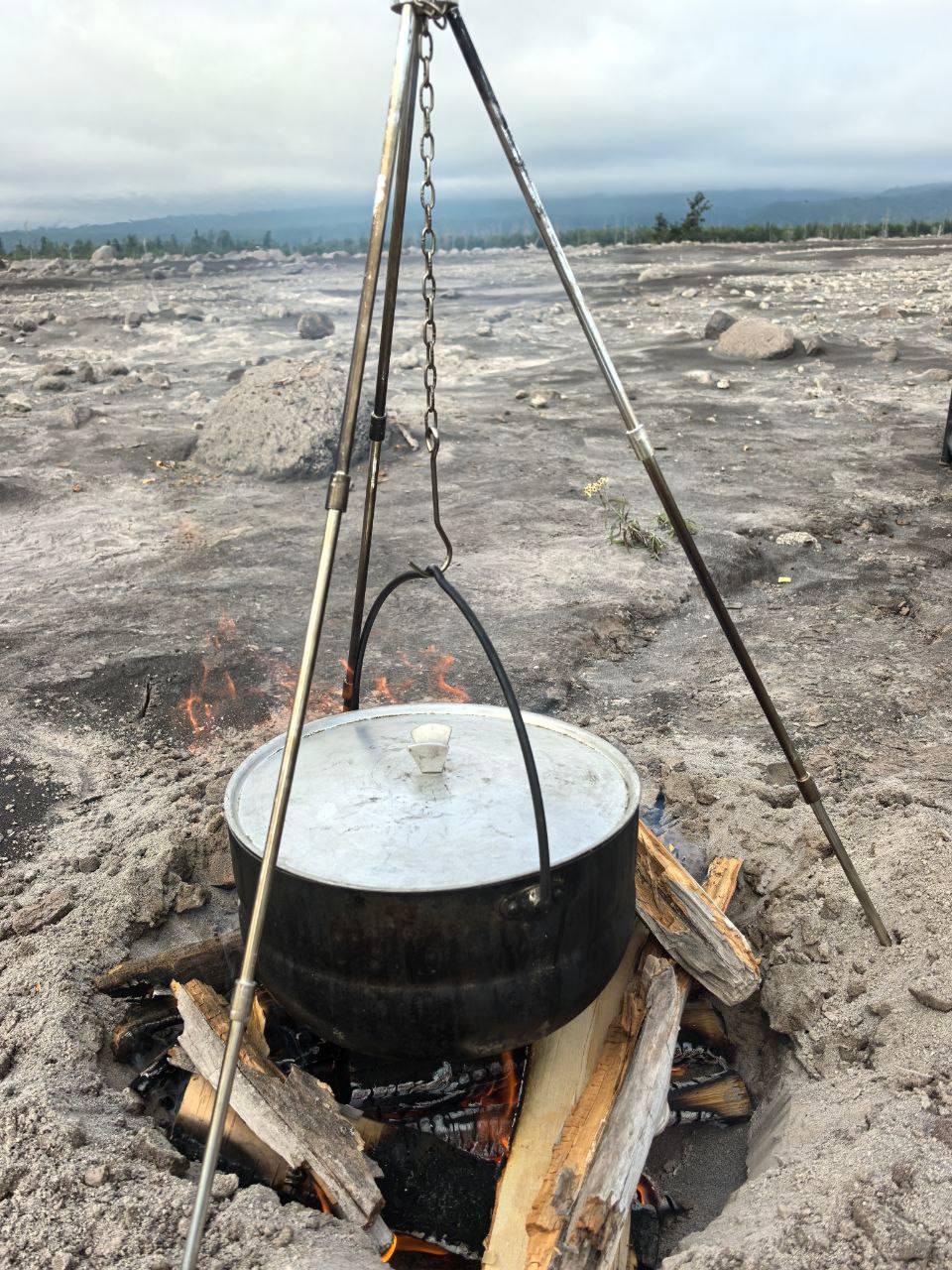 Затем ваш путь пройдет через поселок Козыревск через шлаковые поля. Необходимо будет сделать короткую остановку для дозаправки и после выезд к подножью вулкана Шивелуч на грозовое поле. Тут вы сможете наблюдать поистине завораживающие «лунные» пейзажи. Вы увидите последствия постоянных извержений этого исполина и полюбуетесь «другой планетой». Прямо на подножье обед, стол: солянка на костре.