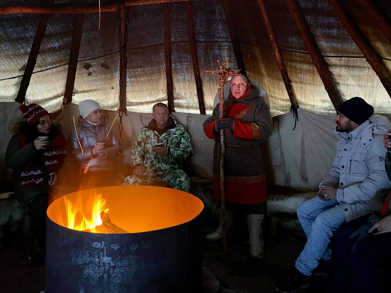 В саамском чуме мы согреемся северным чаем, узнаем от Саама самые загадочные и интересные легенды из жизни саамов, услышим игру на шаманском бубне и посетим камень с рунами.