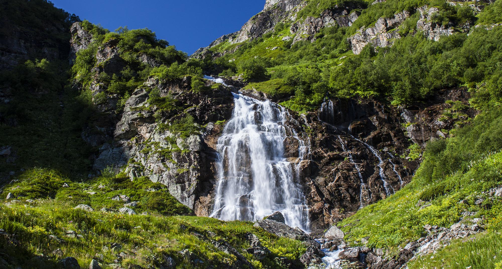 Совершаем переход до верних ночевок у водопадов. В обед ставим лагерь. После обеда радиальный выход без рюкзаков на Большое Имеретинское озеро.