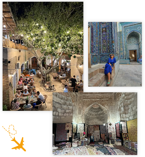 Мы почти каждый день будем переезжать в новые места. Будем жить в уютных бутик-отелях в Ташкенте, Самарканде, Бухаре.