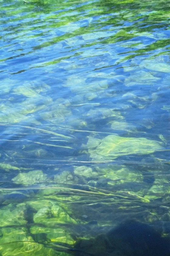 Мы встречаем огромные папоротники, ощущение, что мы не в Судогде, а в декорациях к фильму «Аватар». Дикая природа, извилистые водоросли, текстуры которых отлично видны в прозрачной воде.
