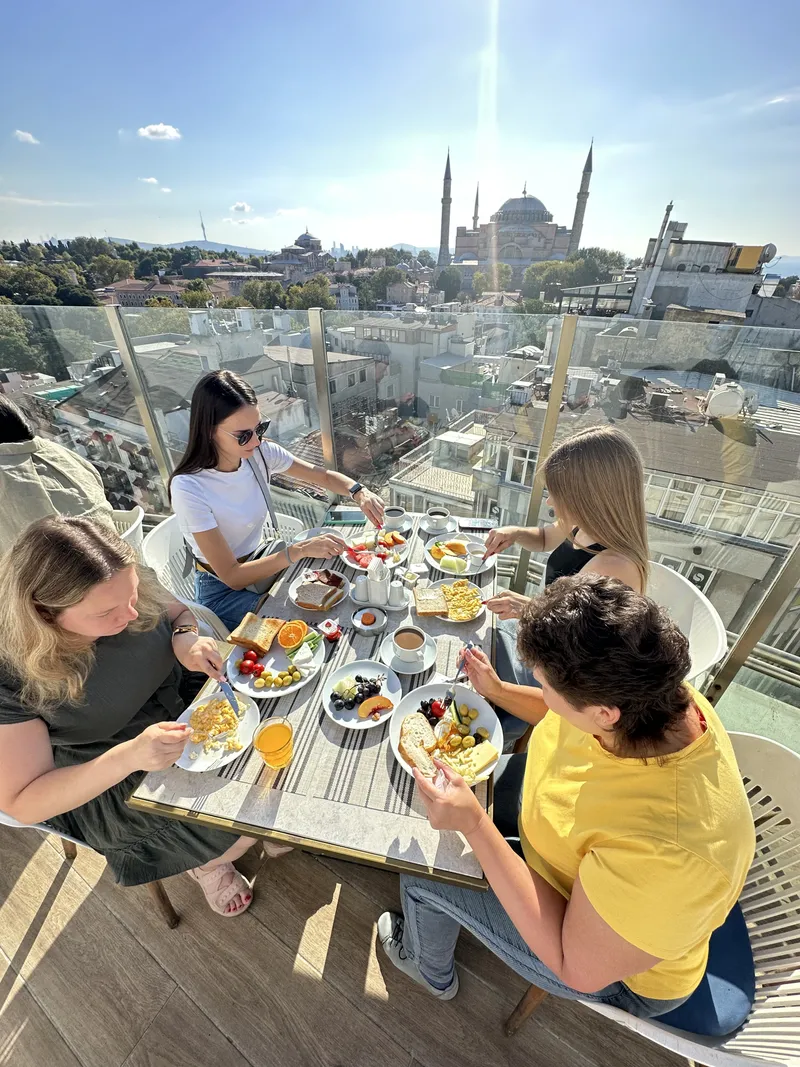 покормим чаек и сделаем фото на смотровой ресторана с прекрасным видом на самые знаменитые мечети: Ай-София, Голубая мечеть.