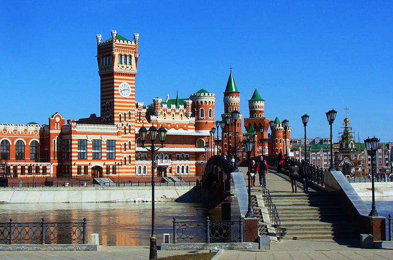 Посетить Йошкар-Олу – все равно, что попасть в Диснейленд. Этот город не зря переводится как «красный», «красивый». В буквальном смысле это город замков и памятников. Театр кукол в стиле замка Нойшванштайн, который стал прообразом для Диснеевской заставки. Школа в виде роскошного дворца. Набережная Брюгге в стиле северной готики. Национальная художественная галерея – Италия. Площадь Оболенского-Ноготкова (первого воеводы города) – Венеция. Дворец бракосочетаний – настоящий готический замок. Есть и свой Амстердам, и свои куранты на Благовещенской башне, и удивительный Царевококшайский кремль, где хранятся археологические древности с тысячелетней историей (места эти были заселены еще эпоху мезолита, а черемисы появились еще в 11 в. до н.э.).