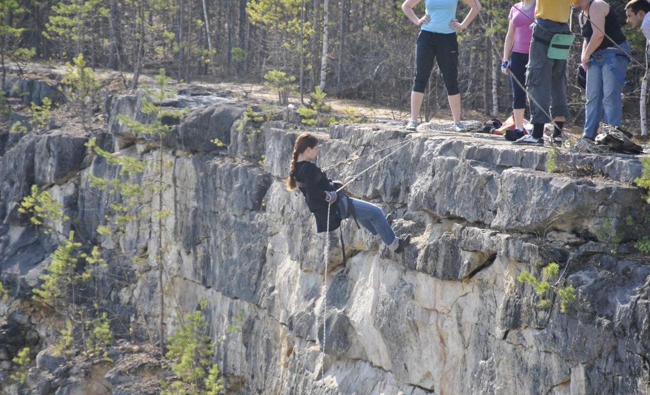 | 16:00 | Берем веревки, карабины, обвязки и отправляемся в сам карьер, где будет урок по скалолазанью. |