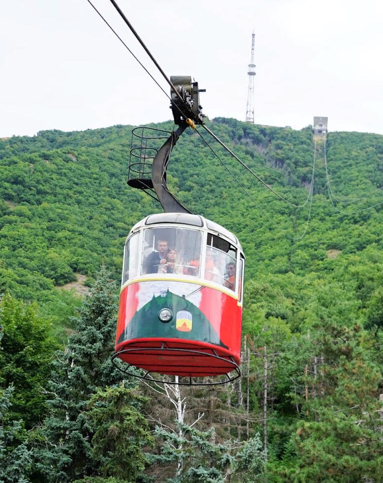Горный край и Мекка альпинистов, источник вдохновения для Владимира Высоцкого. Заснеженный двугорбый Эльбрус завораживает и манит своей недоступностью. Путь в Приэльбрусье идёт вдоль Баксанского ущелья – самого длинного на Кавказе. Автобус привозит вас к селению Терскол на поляну Азау и остаётся ждать, а вы начинаете подъём на Эльбрус. В вашем распоряжении – три канатные дороги: первые две – вагончики, третья – кресельная. Третья канатная дорога стартует от станции Мир (3500 м) до высоты 3900 м до лагеря акклиматизации альпинистов. В ясную погоду с успехом можно позагорать среди сверкающего снега. Ещё две кресельных дороги на горе Чегет поднимут вас на высоту 3100 м. Со склонов Чегета открывается прекрасный вид на Эльбрус и гору Донгуз-Орун. После покорения горных высот самое подходящее время утолить жажду минеральной водой из горного источника у подножья горы Чегет. Вы продегустируете самый настоящий нарзан (ещё и газированный!), в месте, где источник вырывается мощной струёй из-под земли. В одном из источников вода буквально кипит. В нарзанах повышенное содержание железа, из-за чего камни вокруг имеют своеобразный ржаво-оранжевый цвет и очень живописно выглядят на фоне яркой зелени.