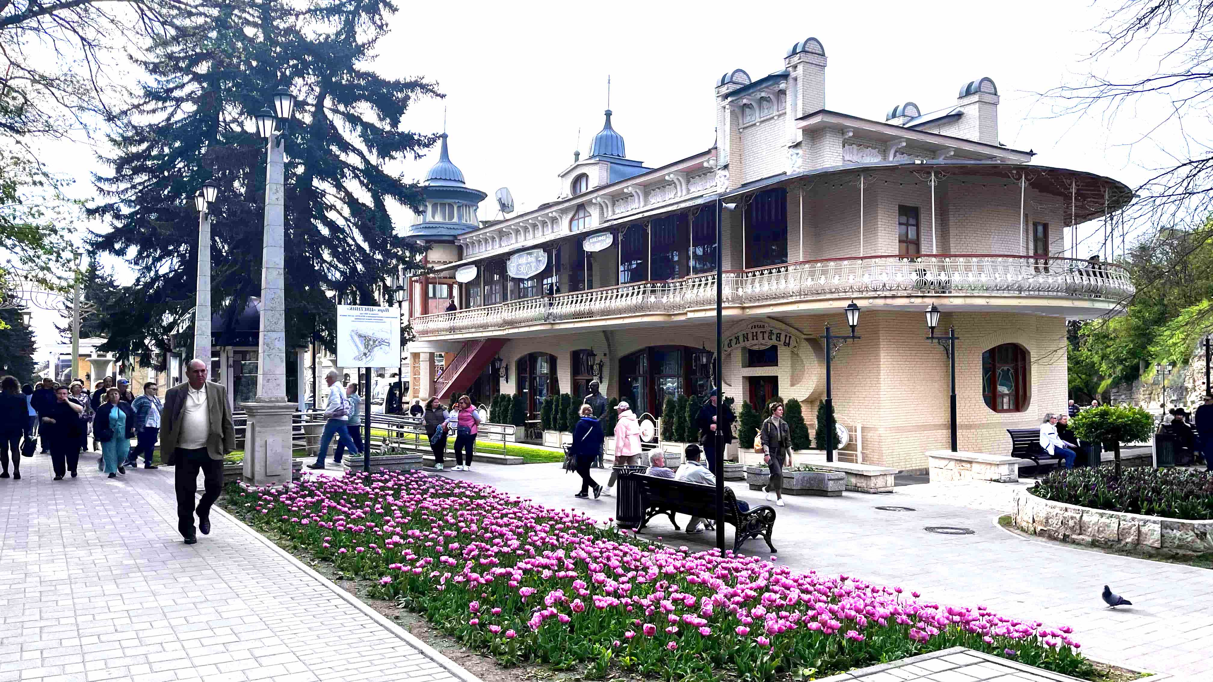 Есть ещё лестница в 1000 ступеней, но экскурсовод вас к ней не поведёт, а пригласит пройти в Нарзанную галерею. Галерея с нарзанами стоит недалеко от колоннады Главного входа в парк, и отсюда вы прогуляетесь по Курортному бульвару, где сохранился ряд исторических зданий в стиле «модерн», популярном в конце XIX – начале ХХ века.
